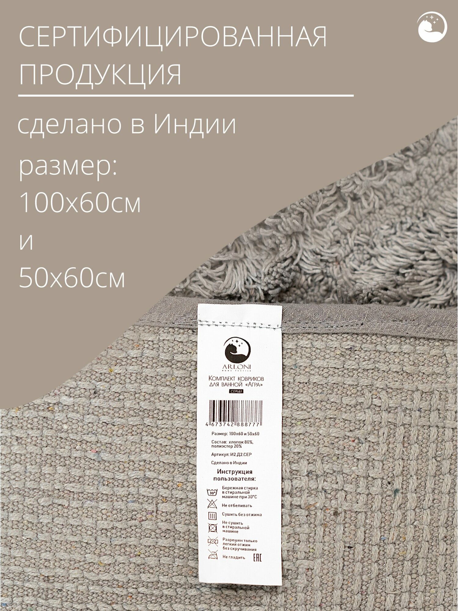 Комплект ковриков для ванной, "Агра "60х100 см и 50х60см, серый, хлопок 80%, полиэстер 20% интересное: