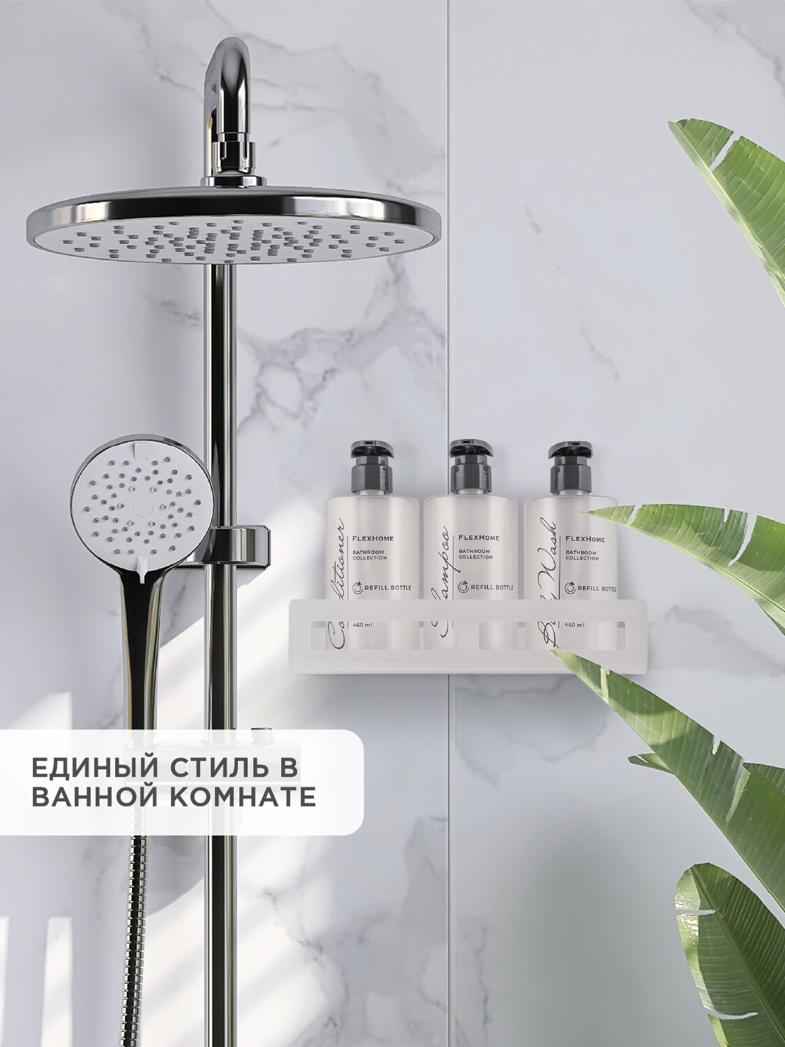 Набор дозаторов для ванной 3 штуки по 460 мл из прозрачного белого пластика, FlexHome, с шелкографией интересное: