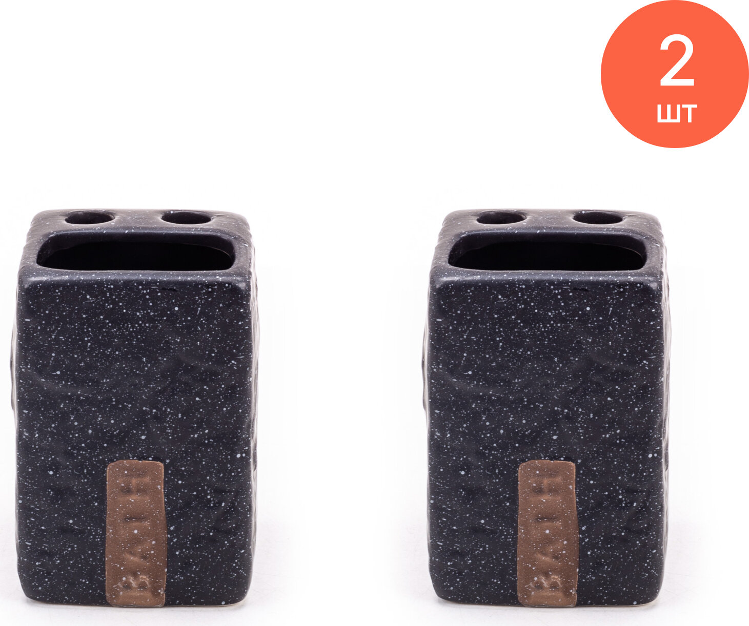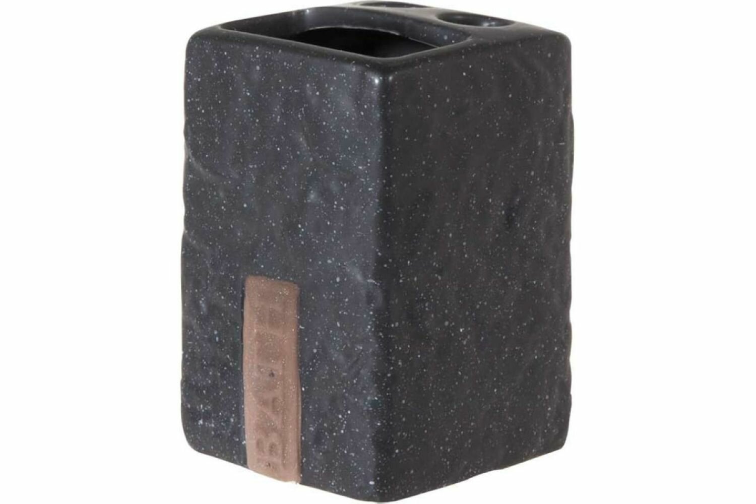 Держатель для зубных щёток "BATH" TBH, фарфор, размер 7x7x10.5см, прямоугольный, черный