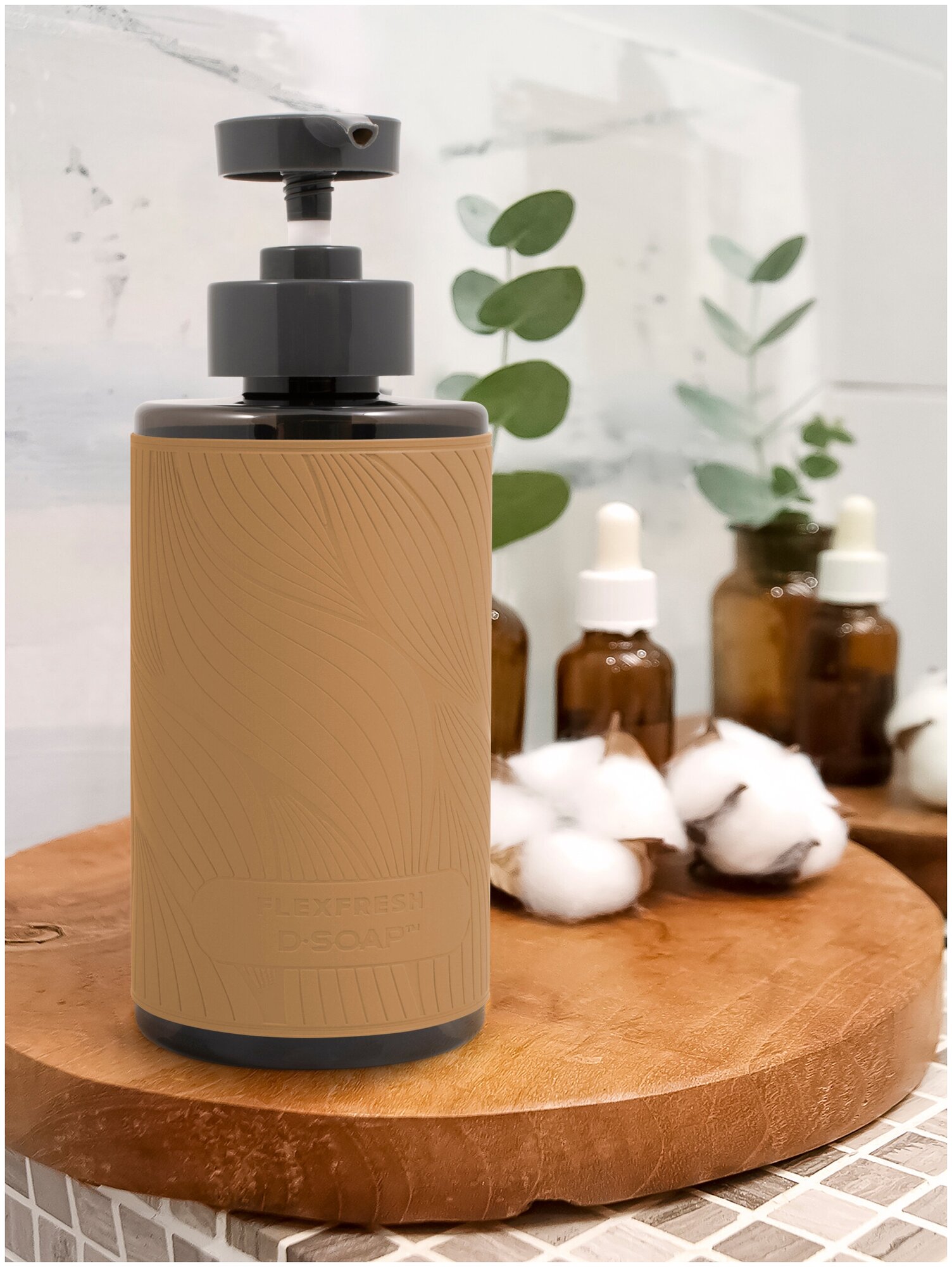 Купить Флакон с дозатором 460 мл D-SOAP Flexfresh с наклейкой из экокожи Soft-touch, цвет Бежевый