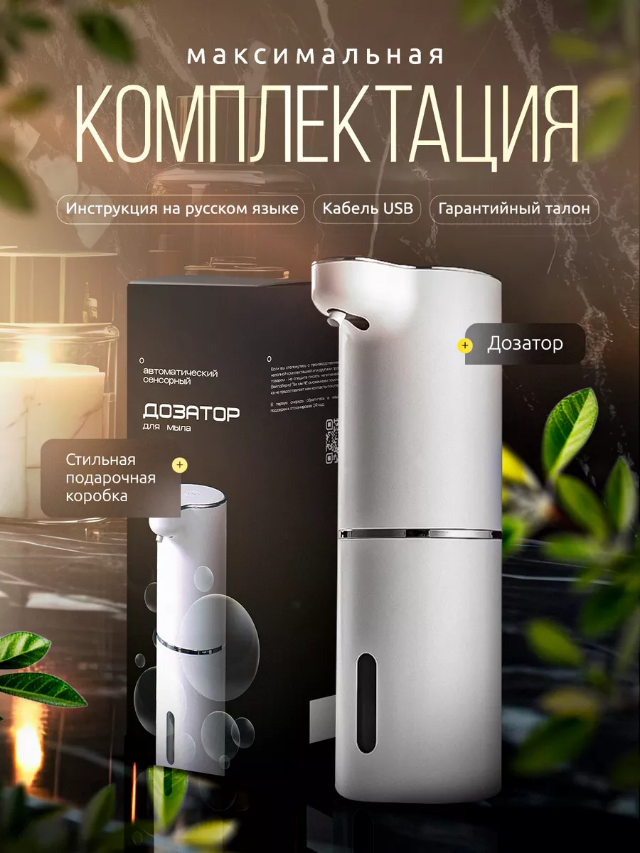 | Подробная комплектация | дозатор сенсорный; кабель USB; гарантийный талон; стильная коробка; инструкция на русском язык |
