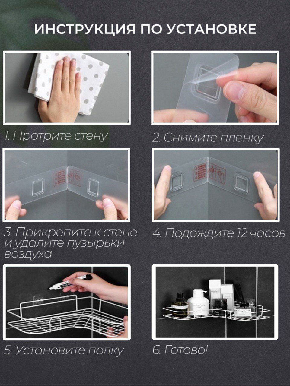 Полка для ванной, кухни без сверления. Угловая полка, черная 2 шт интересное:
