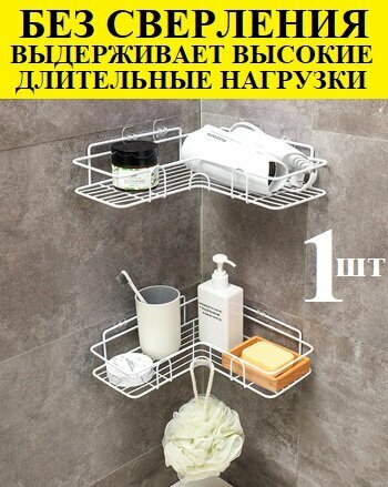 Полка для ванной, без сверления, угловая (1 шт.) цвет белый