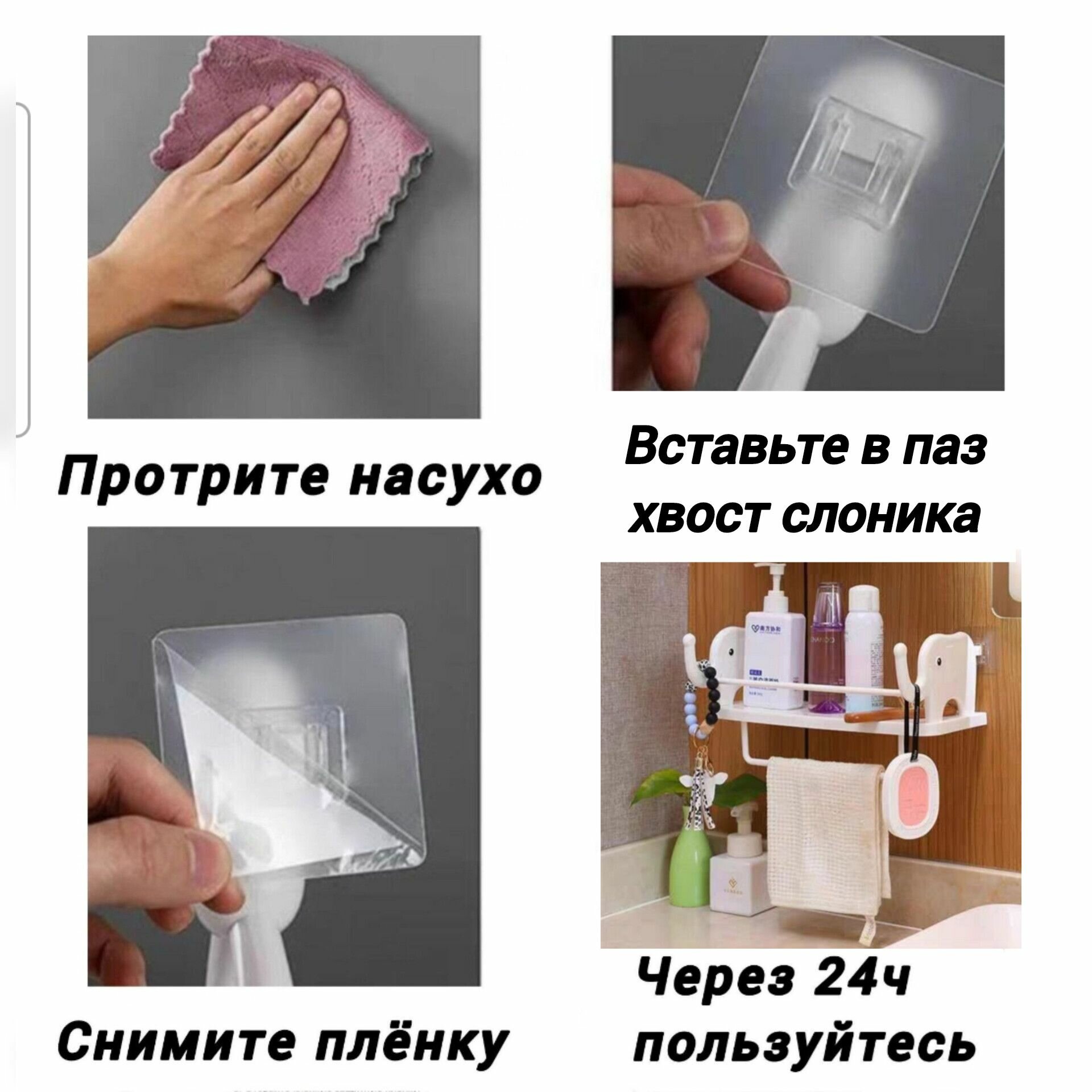 Полка универсальная для ванной и кухни на липучках, 2шт белая, слоники интересное: