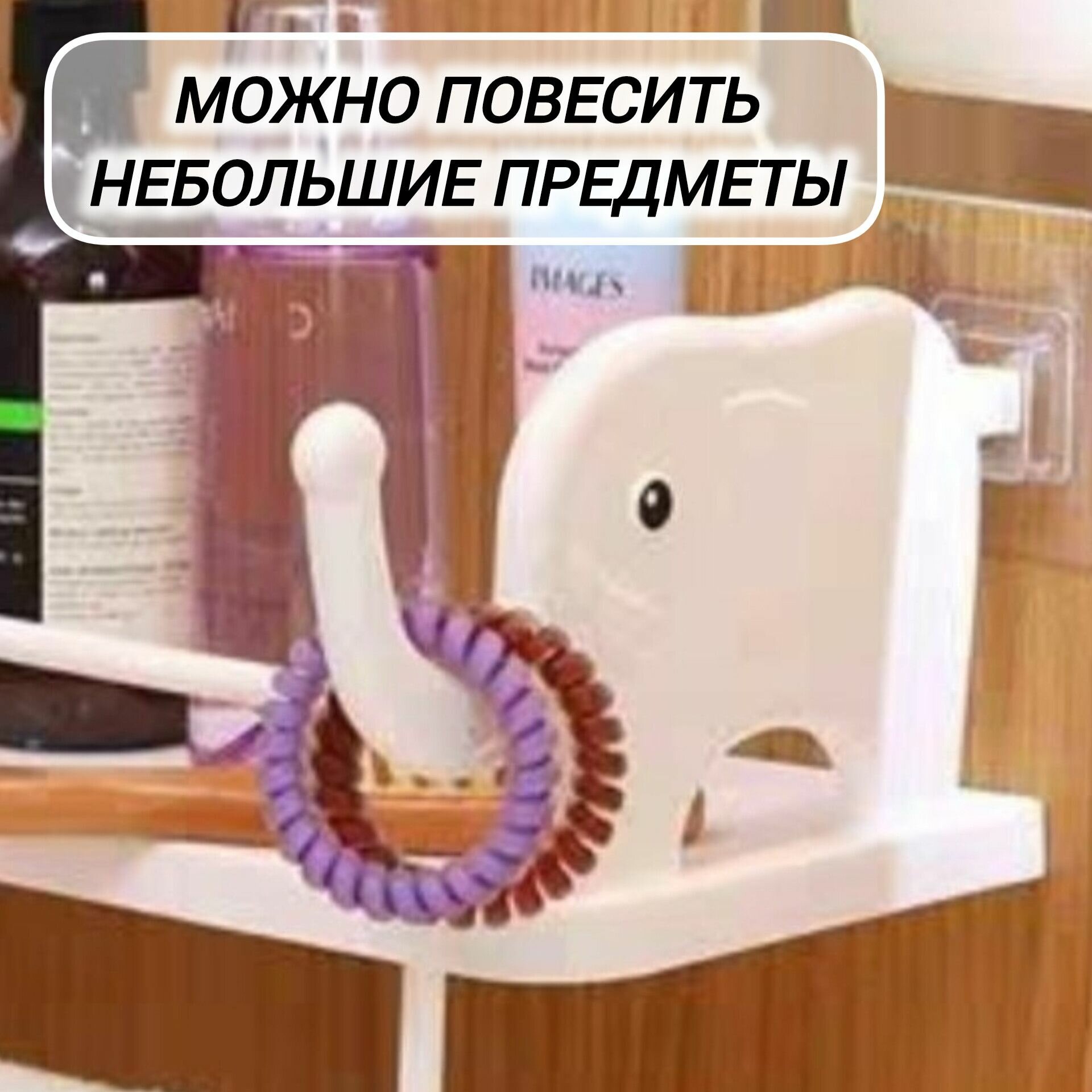 Полка универсальная для ванной и кухни на липучках, 2шт белая, слоники