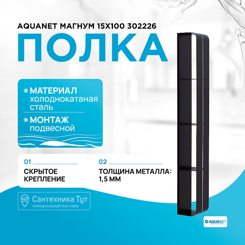 Ниже Вы можете прочитать отзывы на Металлическая полка Aquanet Магнум 15х100 302226 Черная матовая, ознакомится с подробными характеристиками, посмотреть интересные обзоры и фотографии на Металлическая полка Aquanet Магнум 15х100 302226 Черная матовая.