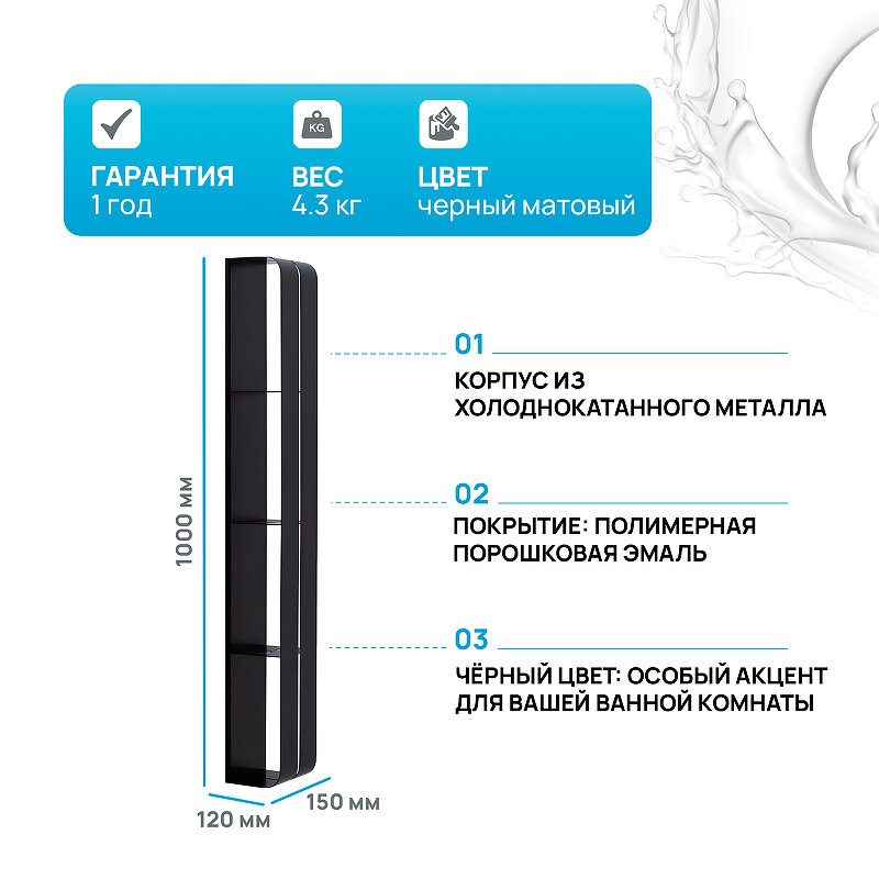 Полка Aquanet Магнум 150х1000х112 вертикальная цв. черный матовый 302226