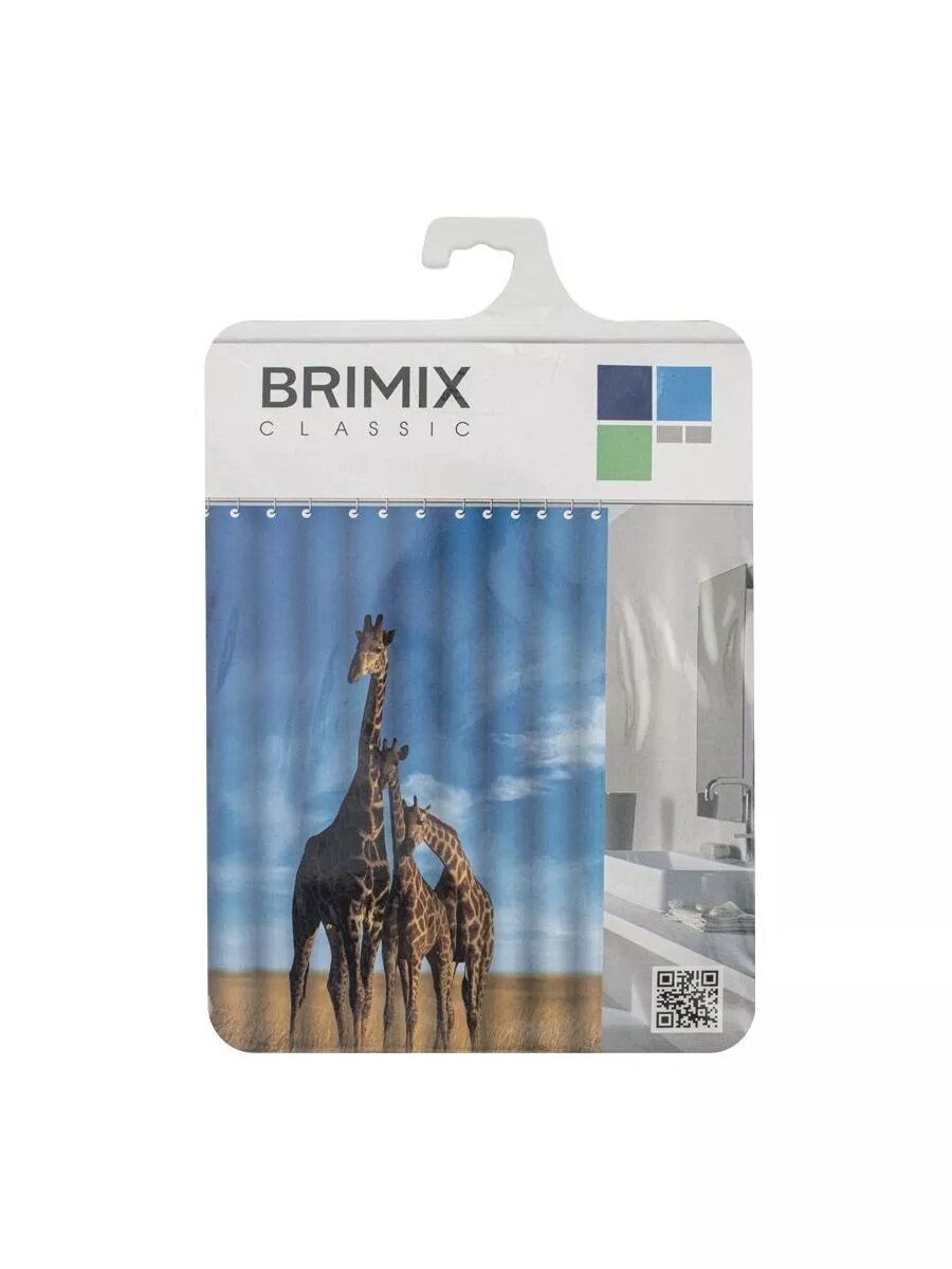 Шторка в ванную комнату BRIMIX фотопечать - жирафы, код: 02-24 (без колец)