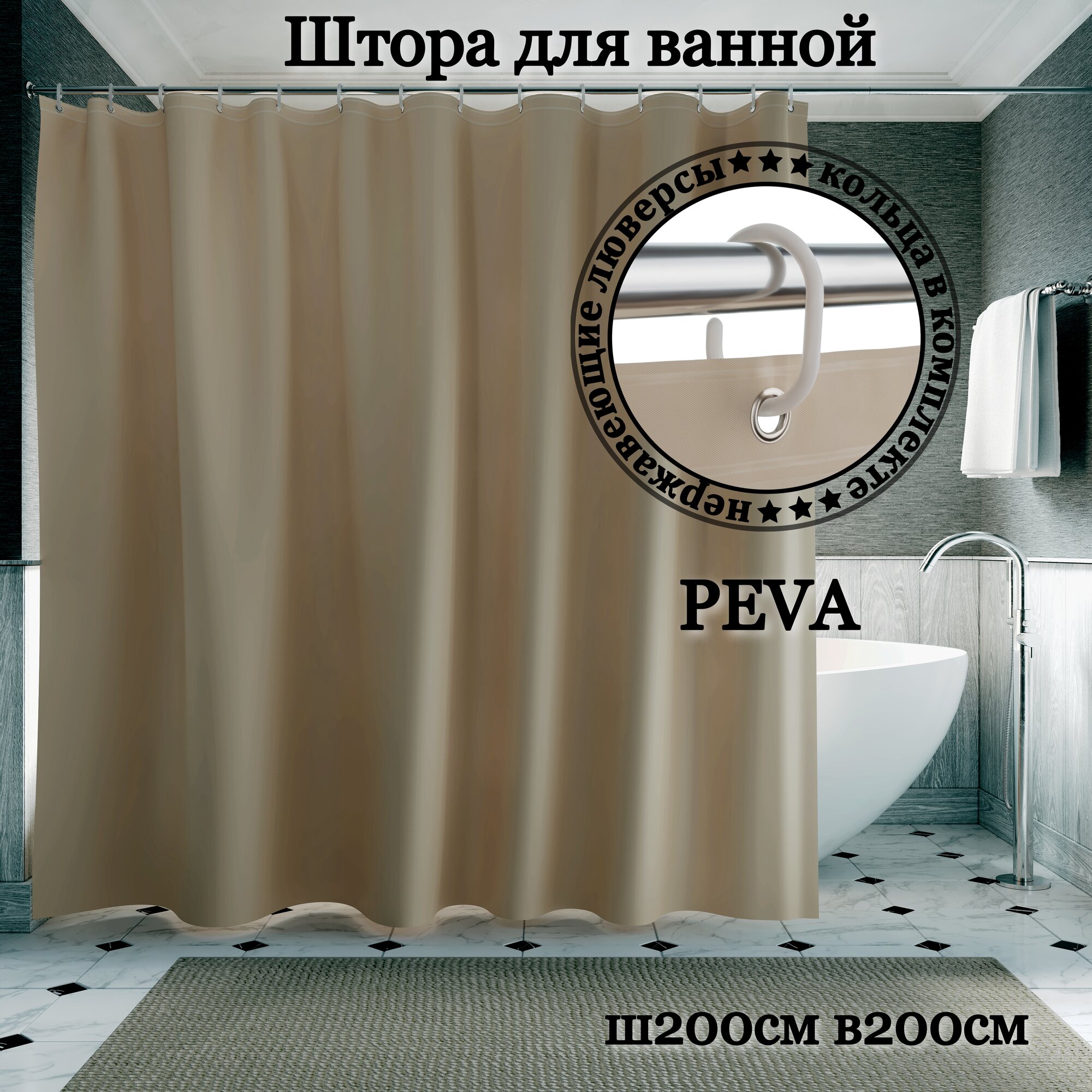 СохранитьШтора для ванной INTERIORHOME, Ш200хВ200см, светло-коричневая, материал PEVA интересное: