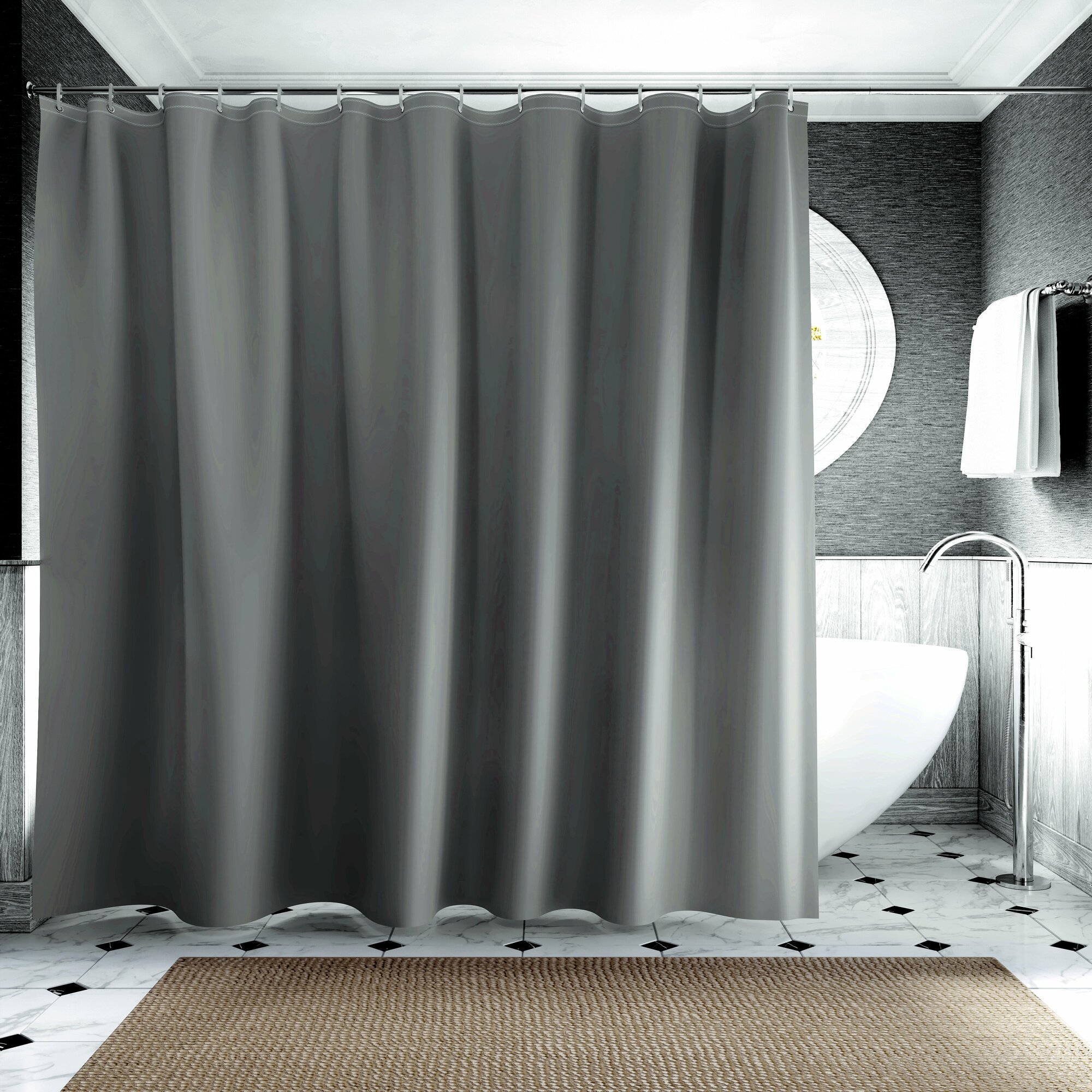 Купить Штора для ванной INTERIORHOME, Ш200хВ200см, темно-серая, материал PEVA