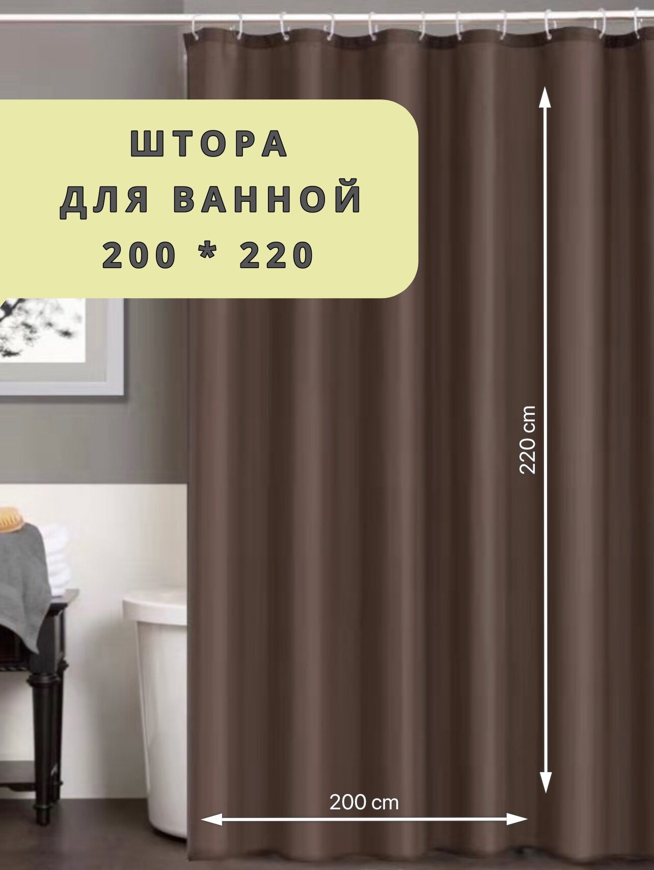 Штора для ванны тканевая 200x220 см, коричневая, с кольцами интересное: