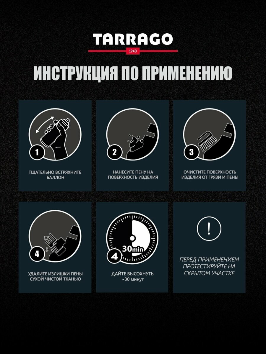 Пена-шампунь Tarrago Shampoo очиститель для гладкой кожи, нубука, замши, велюра, текстиля, тех-материалов 200мл интересное: