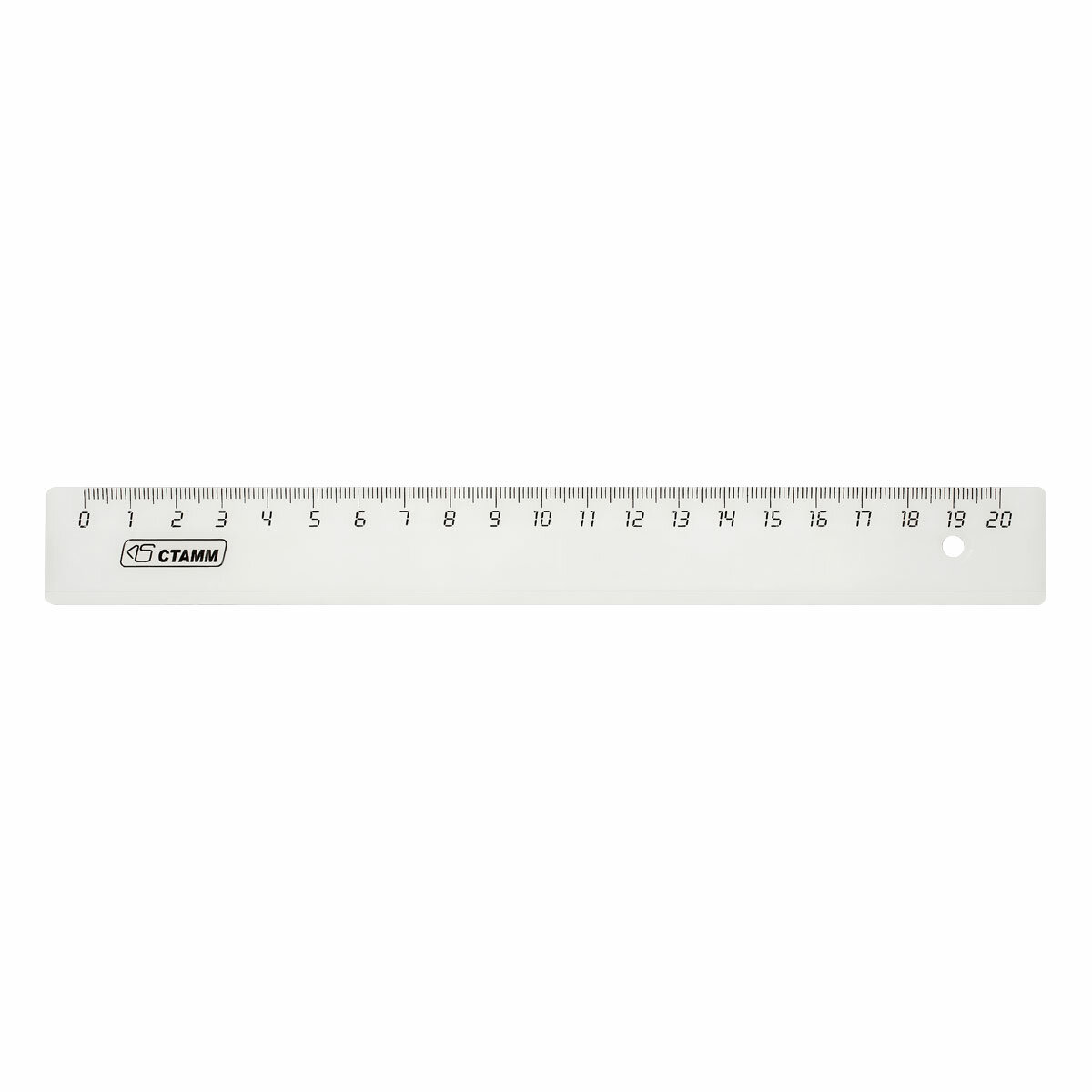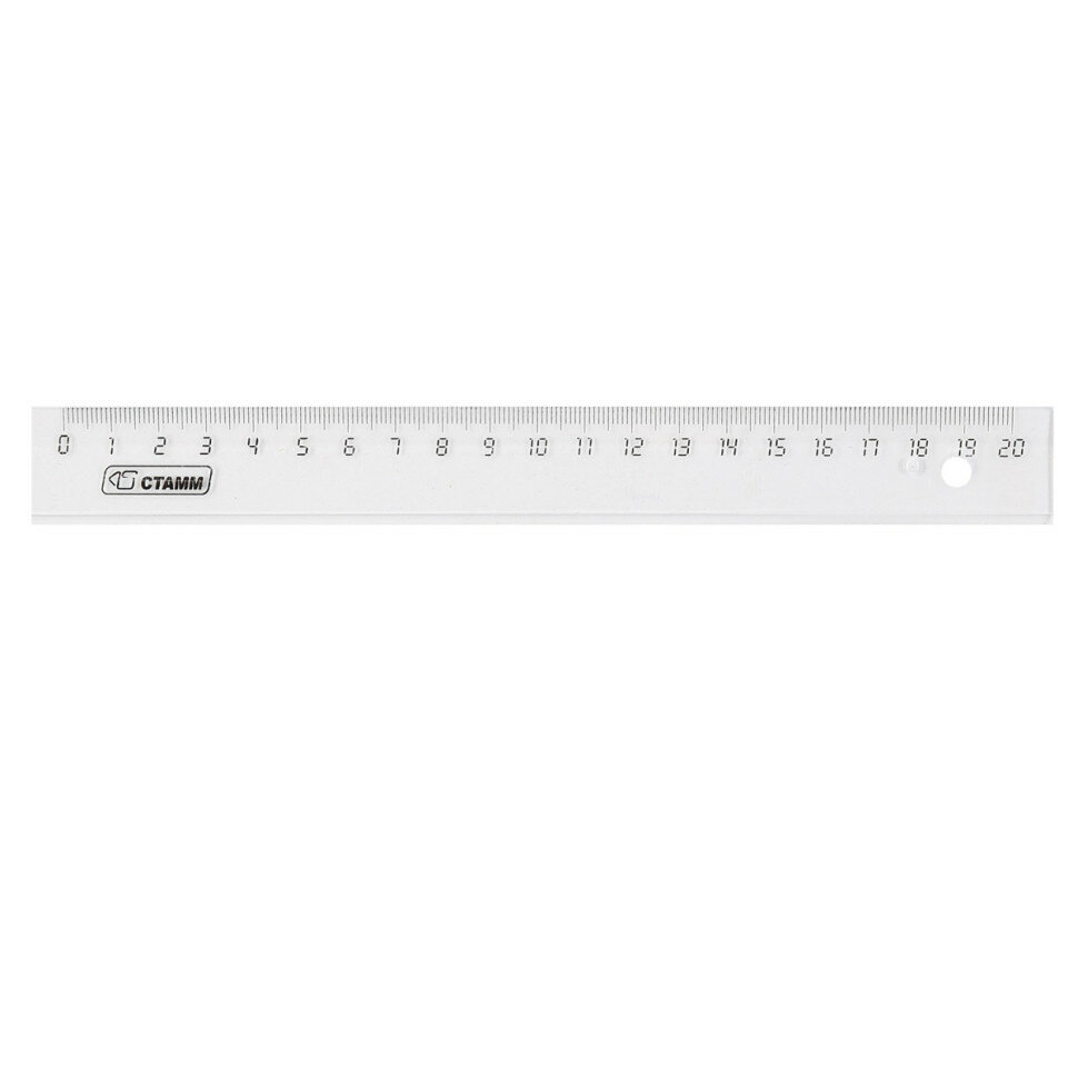 Линейка 20см СТАММ, пластиковая, прозрачная бесцветная