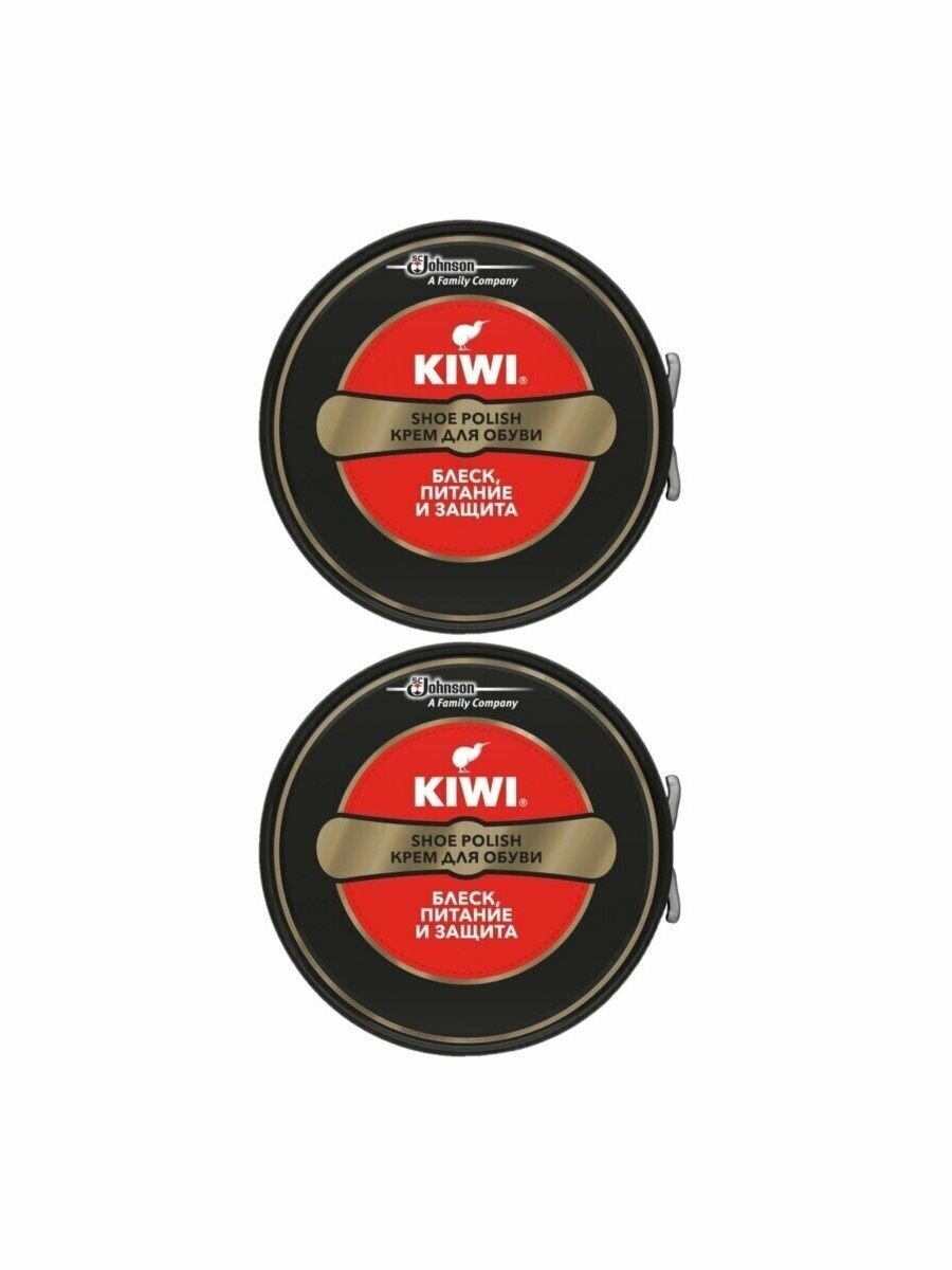 2 банки!!! Kiwi крем для обуви, блеск, питание и защита, черный, 2 шт по 50мл.