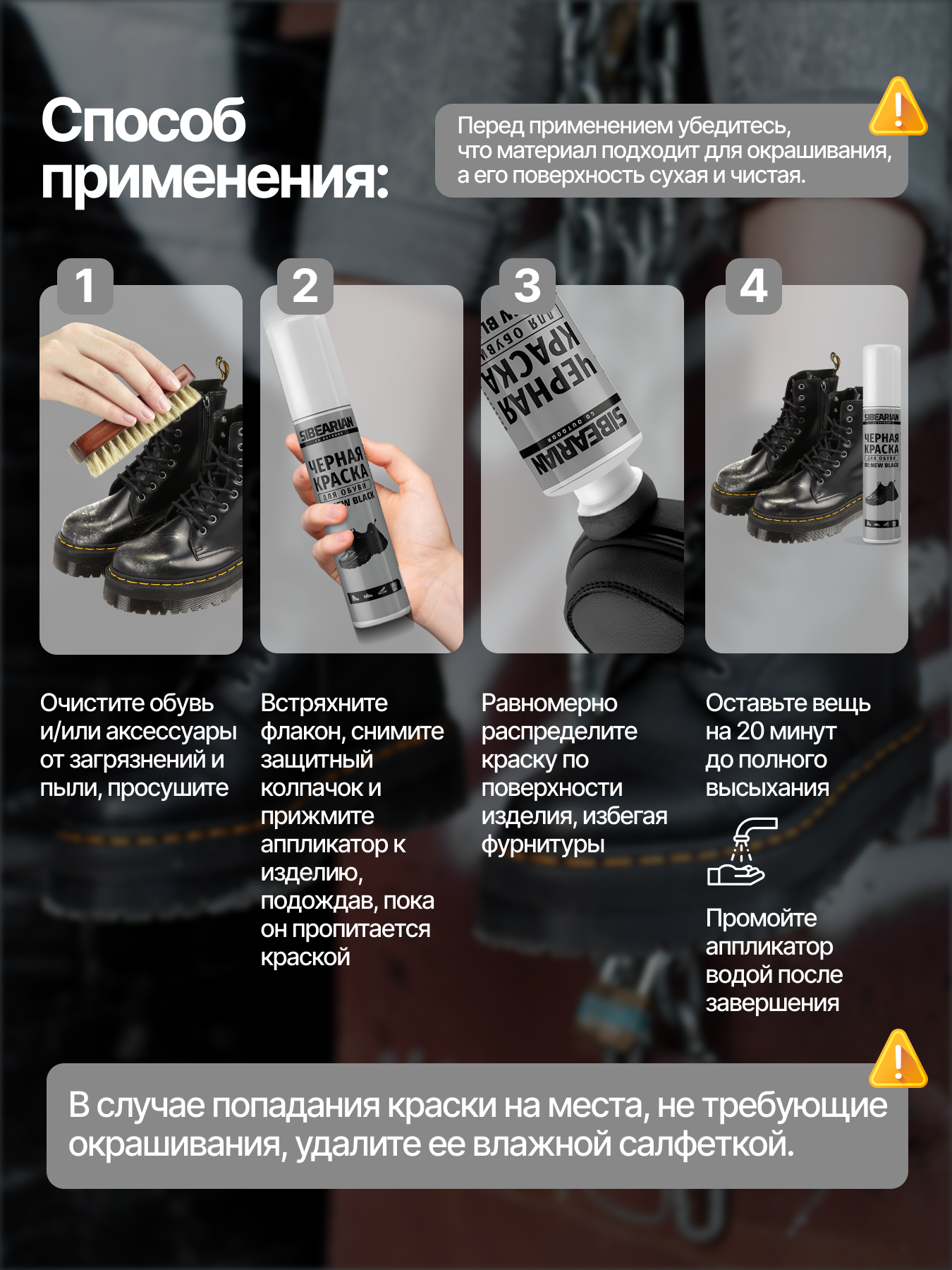 Краска для обуви черная, для кожаных ботинок, подошвы SIBEARIAN RE:NEW BLACK 75 мл интересное: