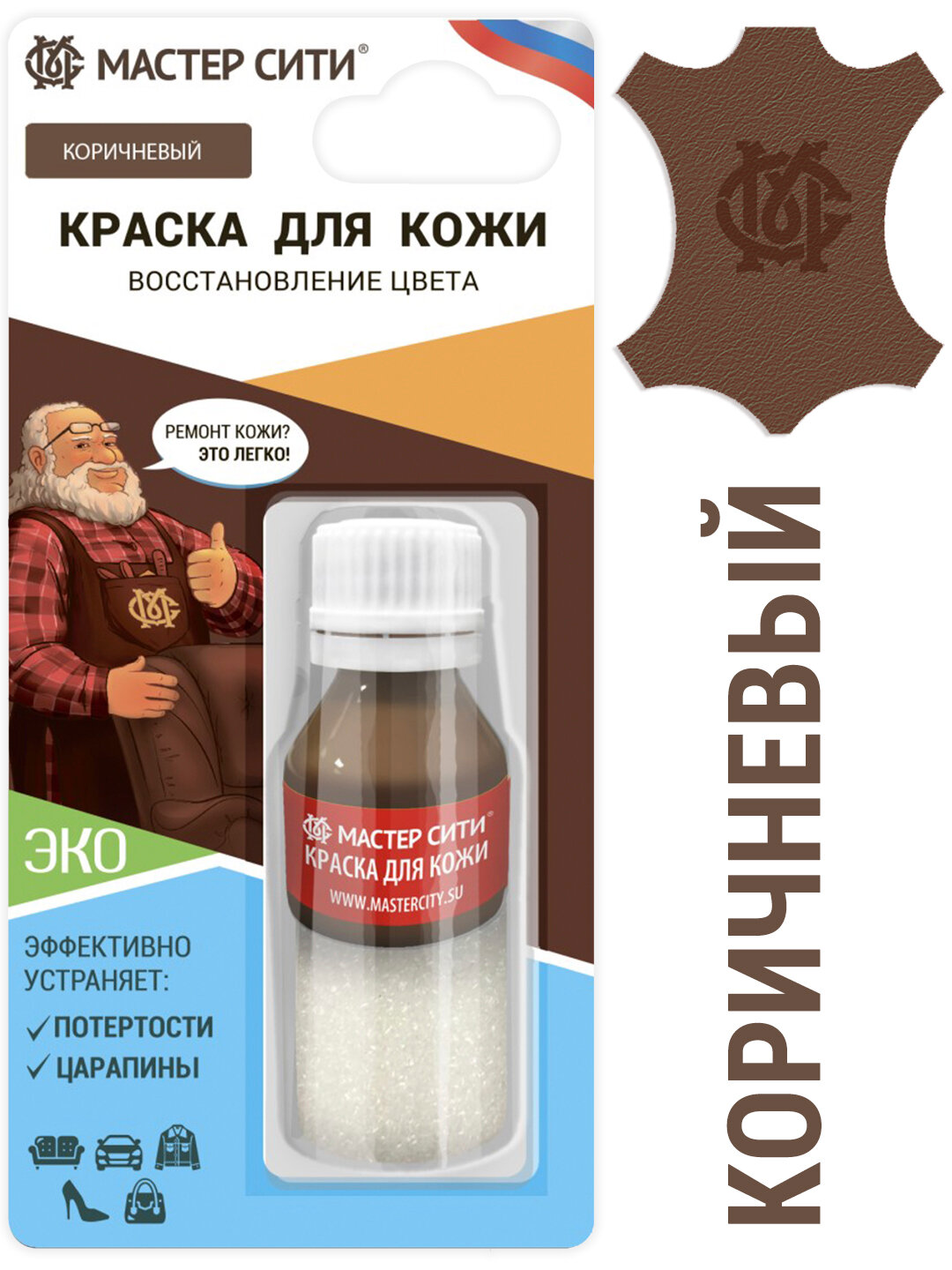 Краска для кожи и обуви мастер сити Коричневый интересное: