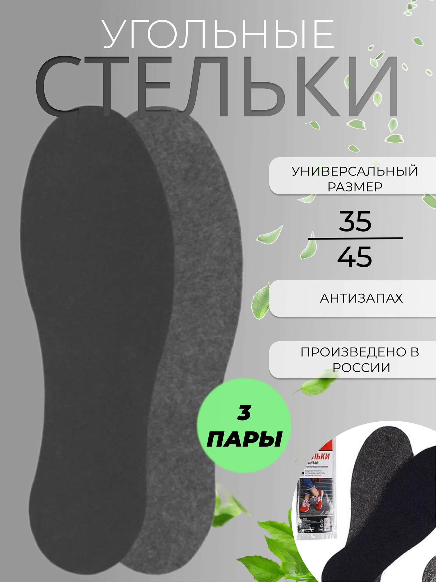 Стельки для обуви"Угольные" Трехслойные. Упаковка - 3 пары. Универсальный размер 35-45 интересное: