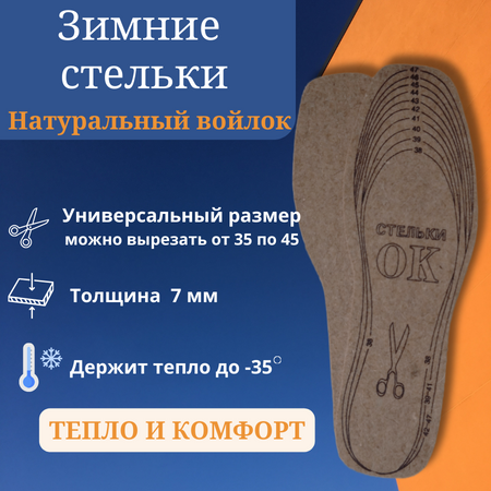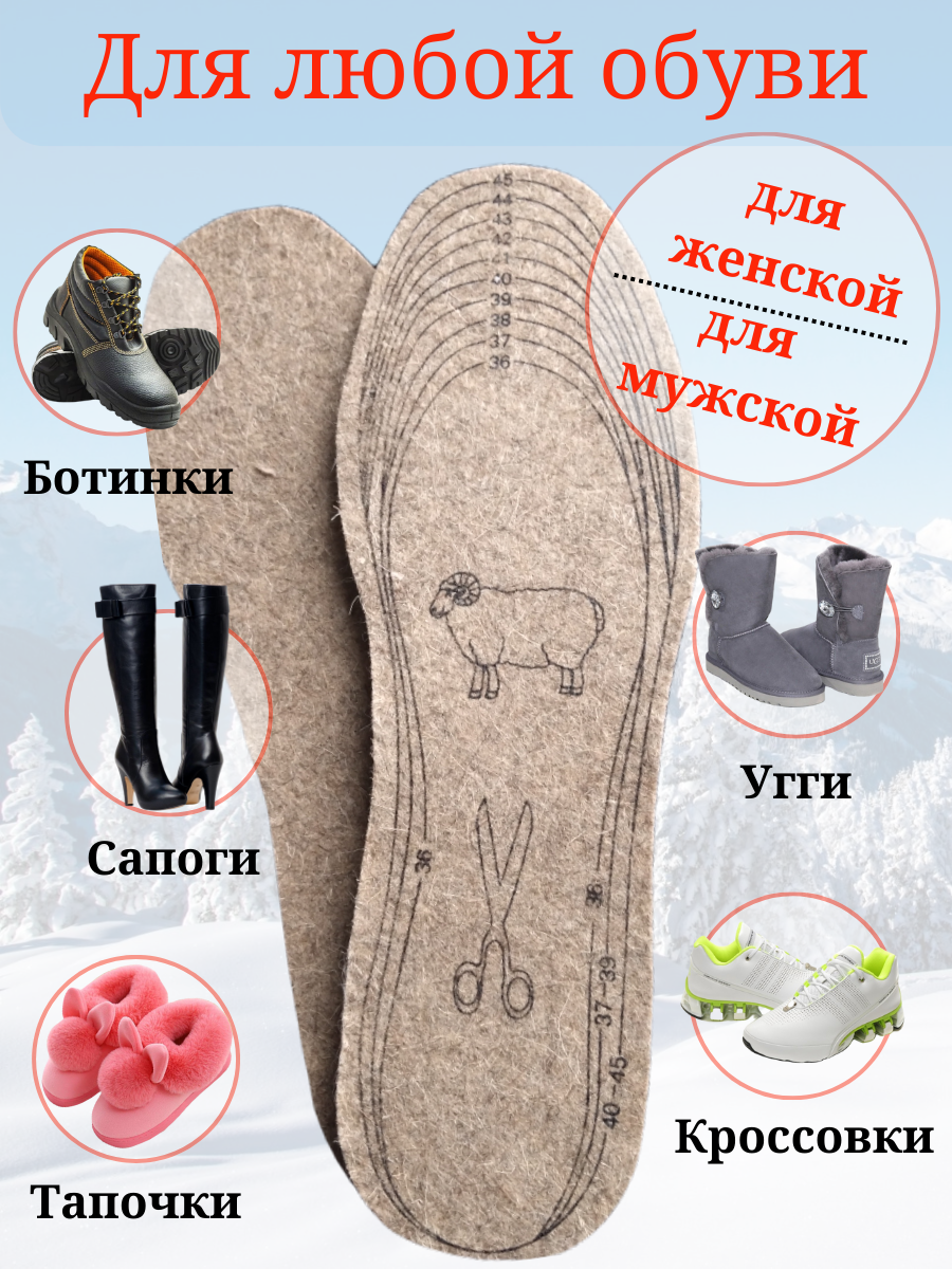 Стельки зимние войлочные теплые мужские женские детские, универсальный размер интересное: