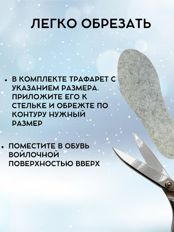 Стельки для обуви зимние войлочные трехслойные с контуром для выреза, универсальный размер 35-46
