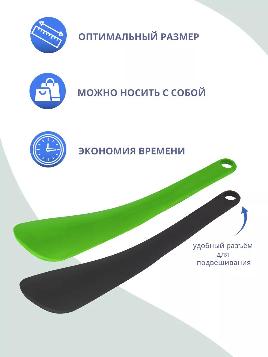 Рожок для обуви изогнутый 20см, 2шт. цвет зеленый, черный интересное: