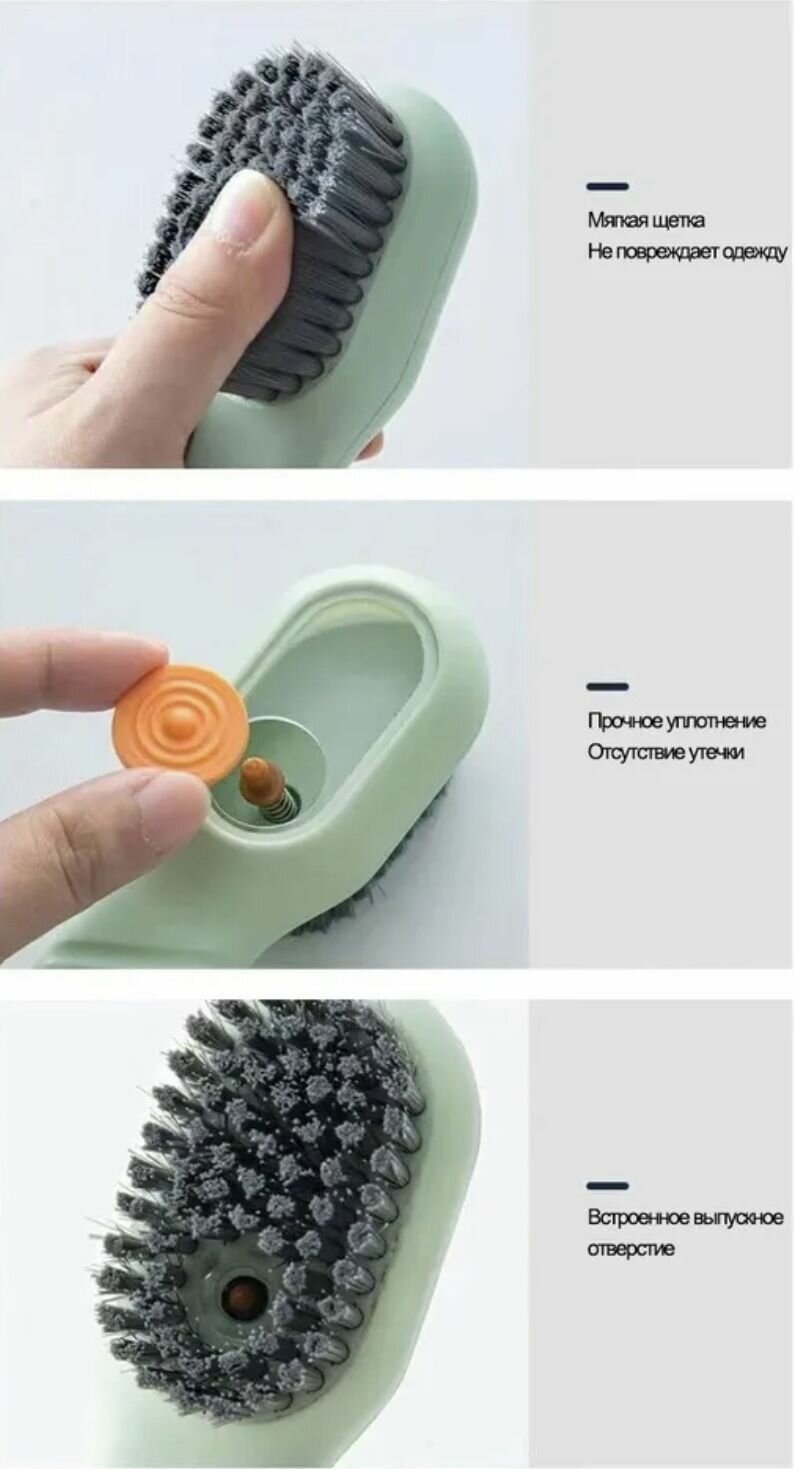 Многофункциональная щетка с дозатором для чистки обуви, посуды, мебели, кухни, салона авто.