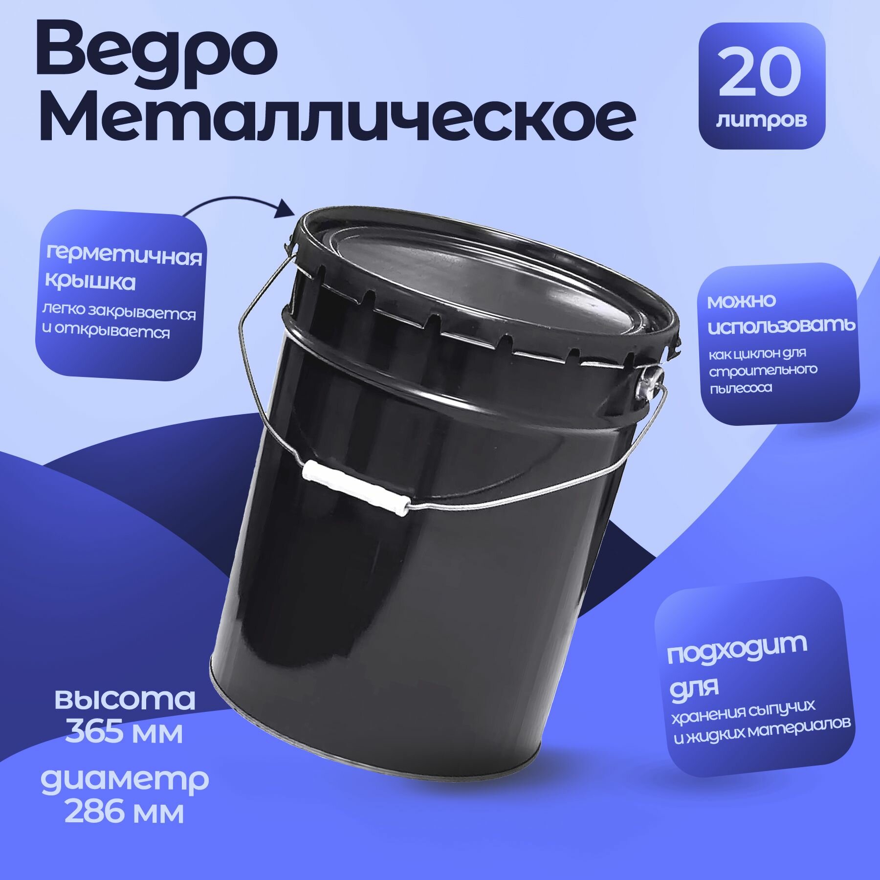 Ведро Тара. ру металл, 20 л, крышка-корона, чёрное 27193