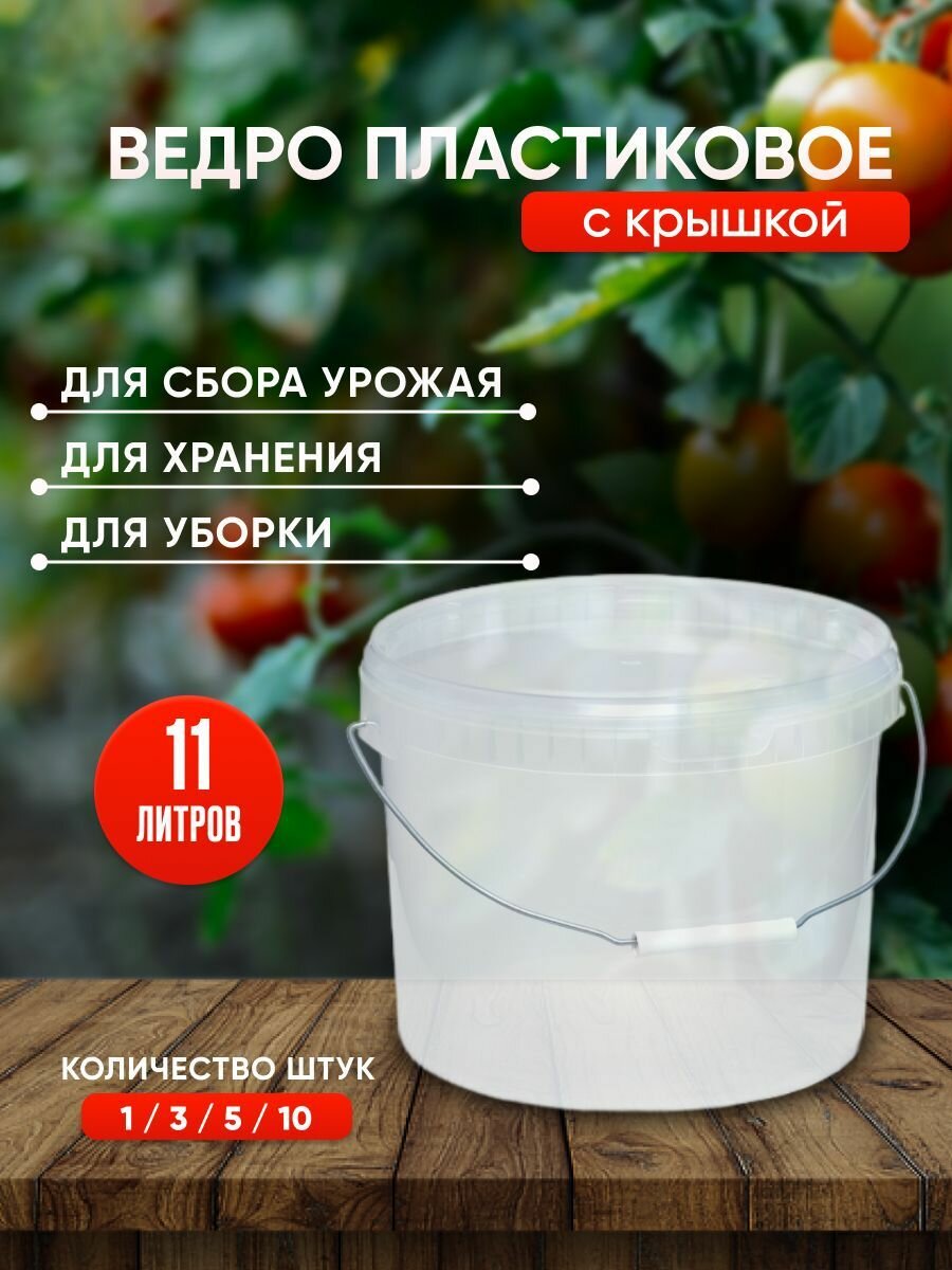 Купить Пластиковое ведро с крышкой, 11 литров, 1 штука, прозрачное