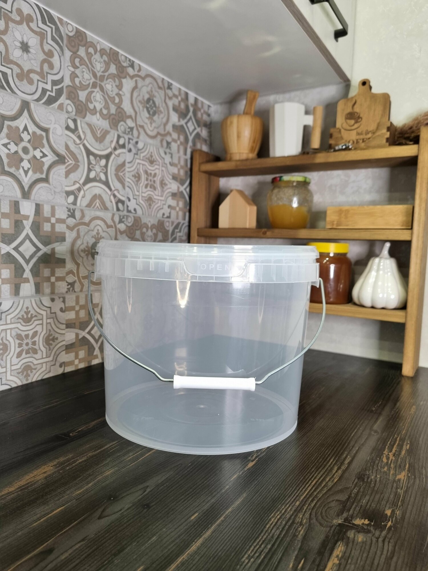 Пластиковое ведро с крышкой, 20 литров, 1 штука, прозрачное