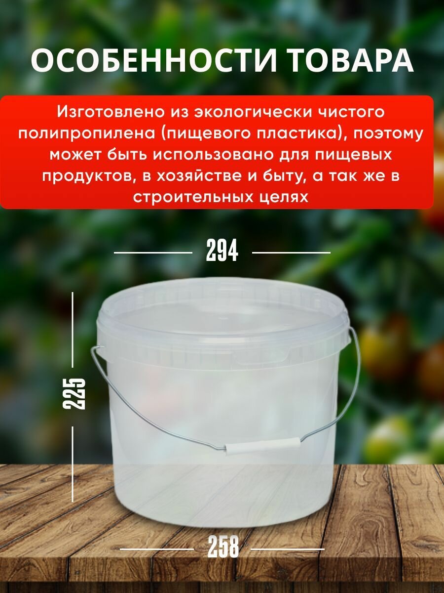 Пластиковое ведро с крышкой, 3,25 литров, 10 штук, прозрачное