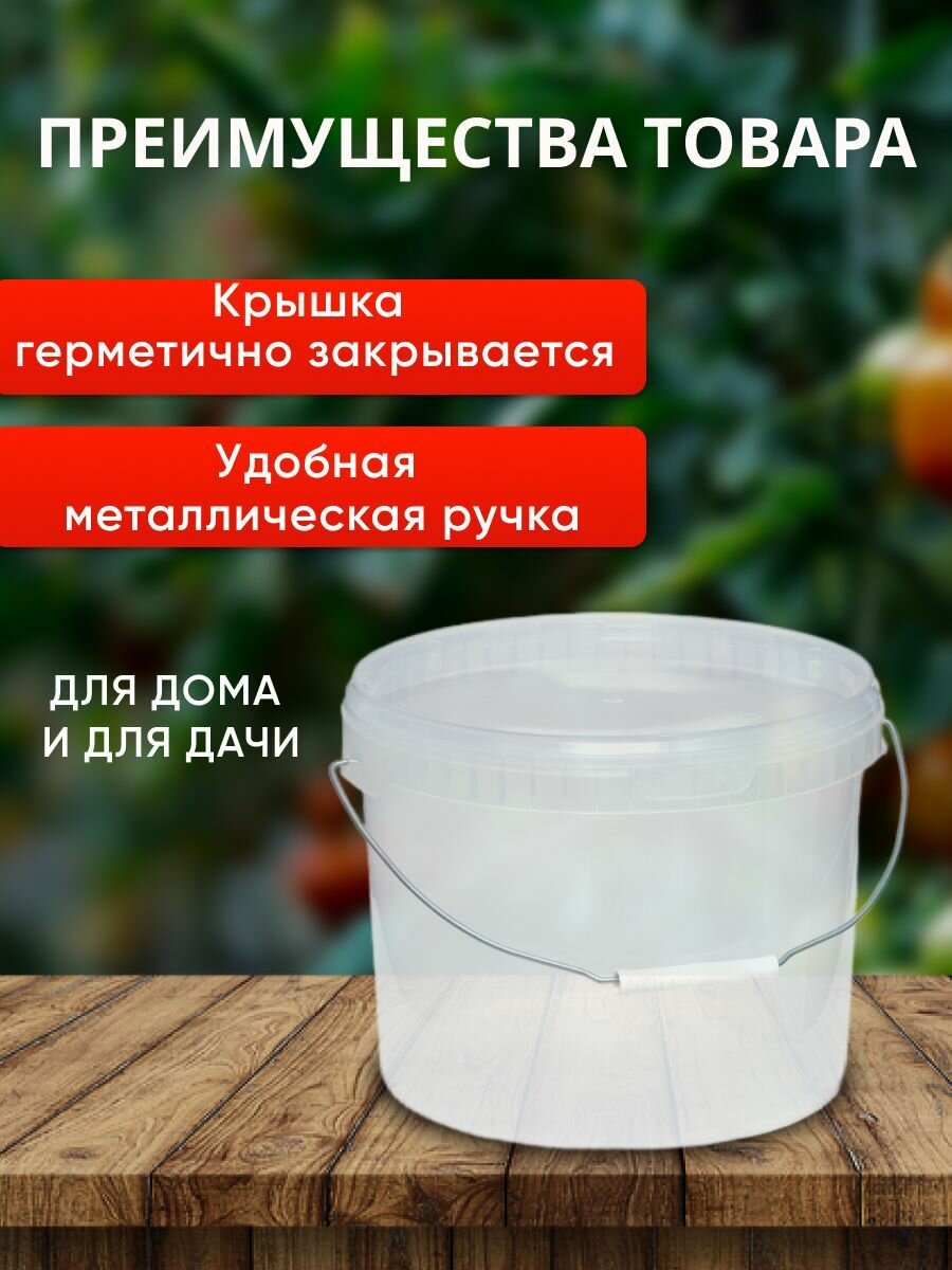 Пластиковое ведро с крышкой, 2 литра, 1 штука, прозрачное