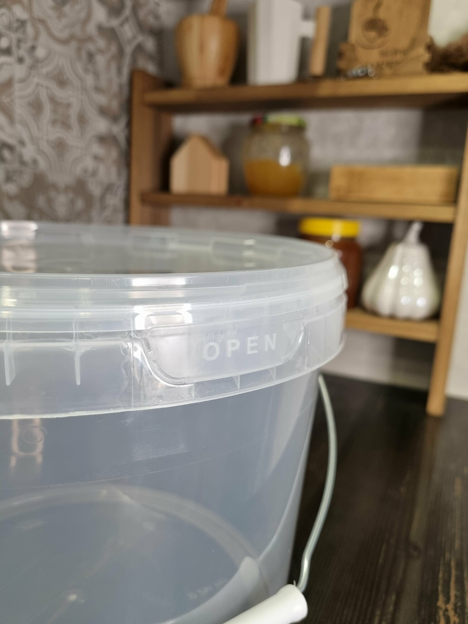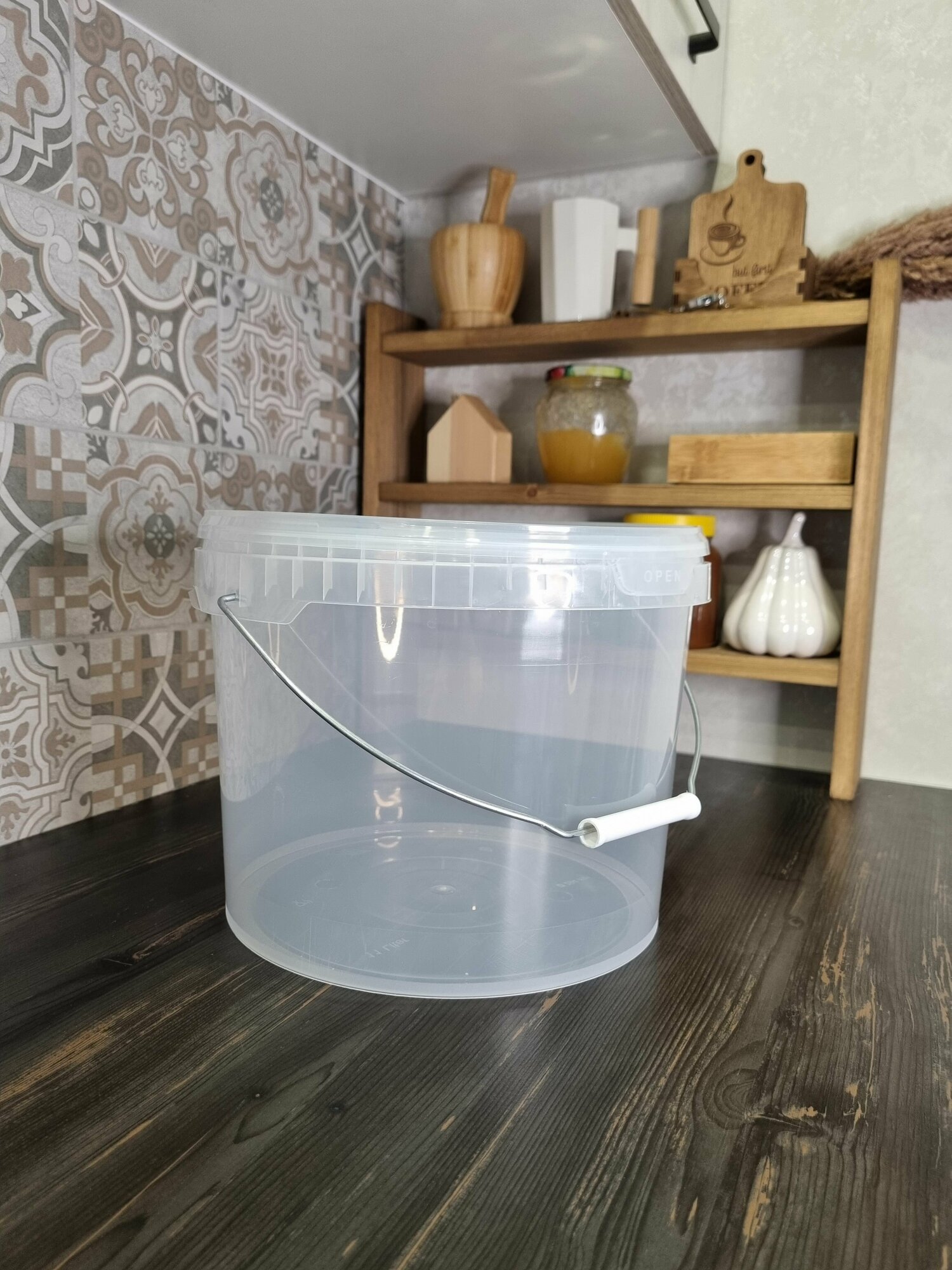 Пластиковое ведро с крышкой, 1 литр, 1 штука, прозрачное