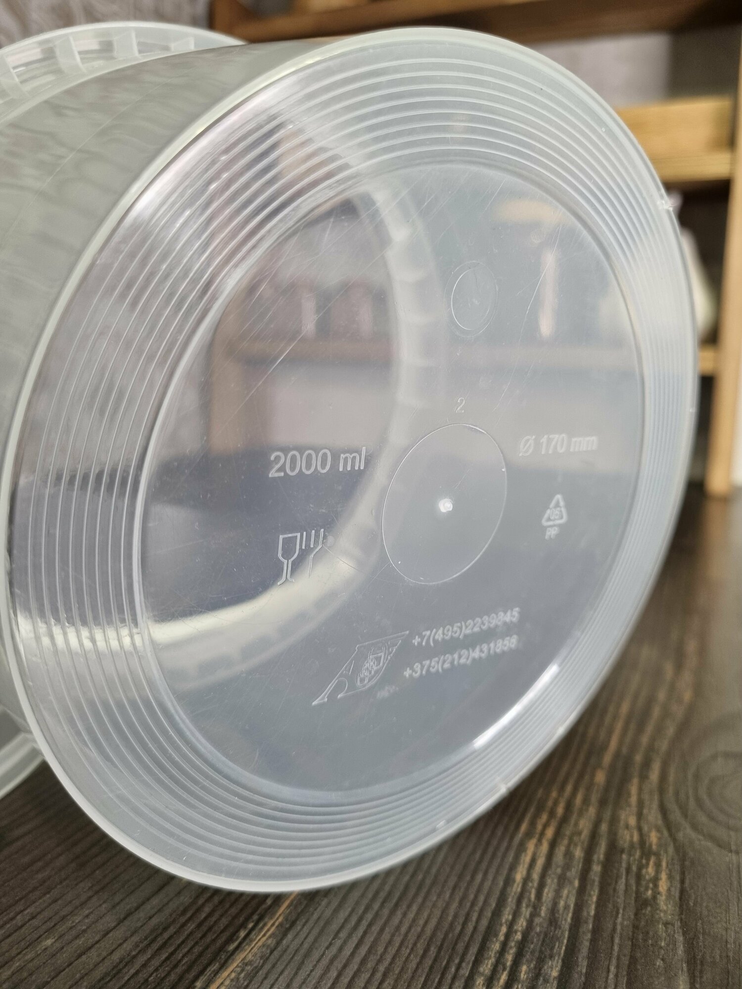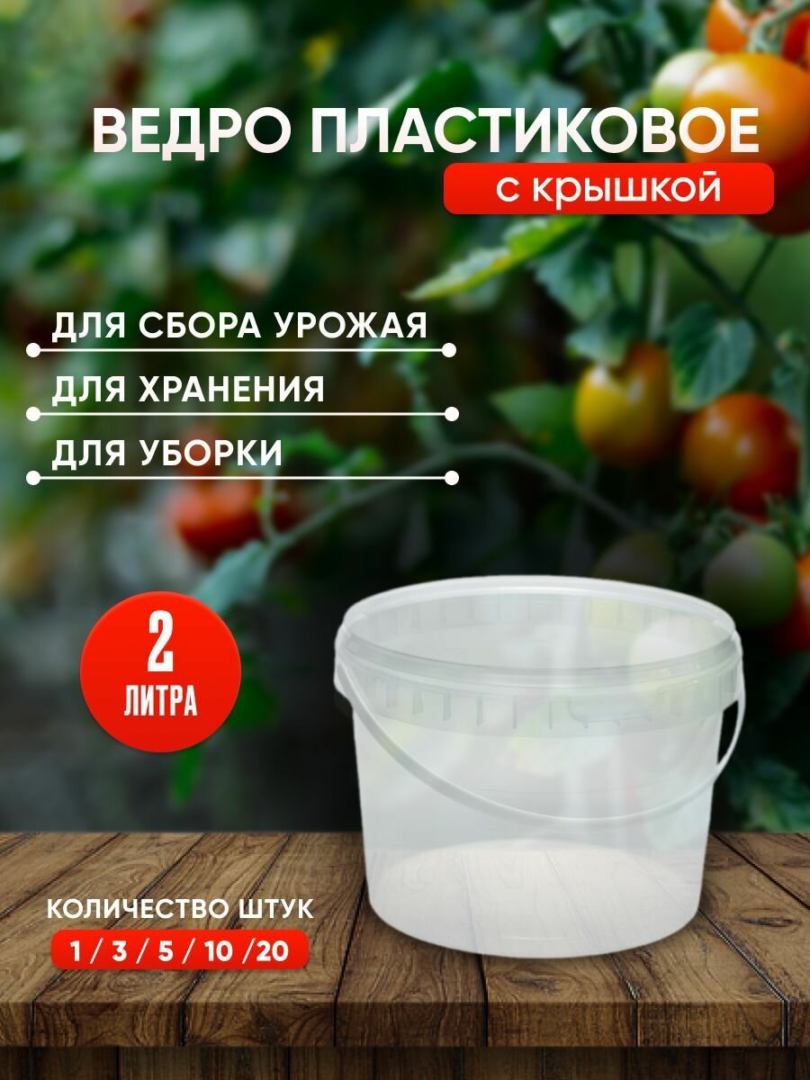 Пластиковое ведро с крышкой, 2 литра, 1 штука, прозрачное