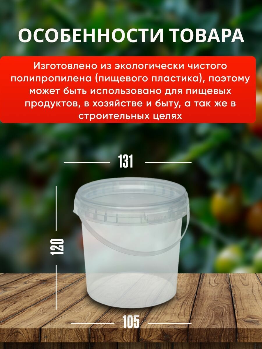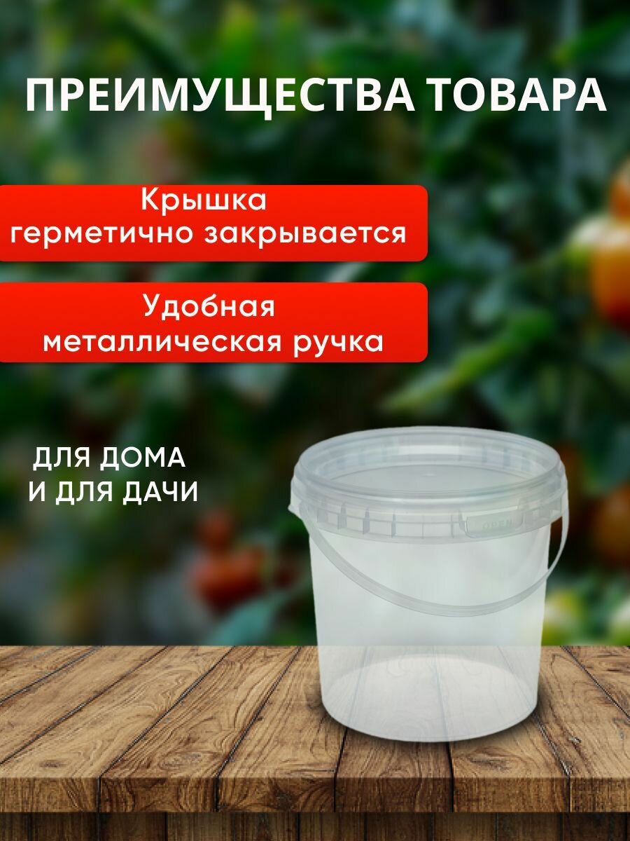 Пластиковое ведро с крышкой, 1 литр, 1 штука, прозрачное