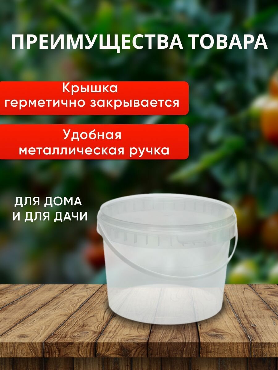 Пластиковое ведро с крышкой, 2 литра, 1 штука, прозрачное