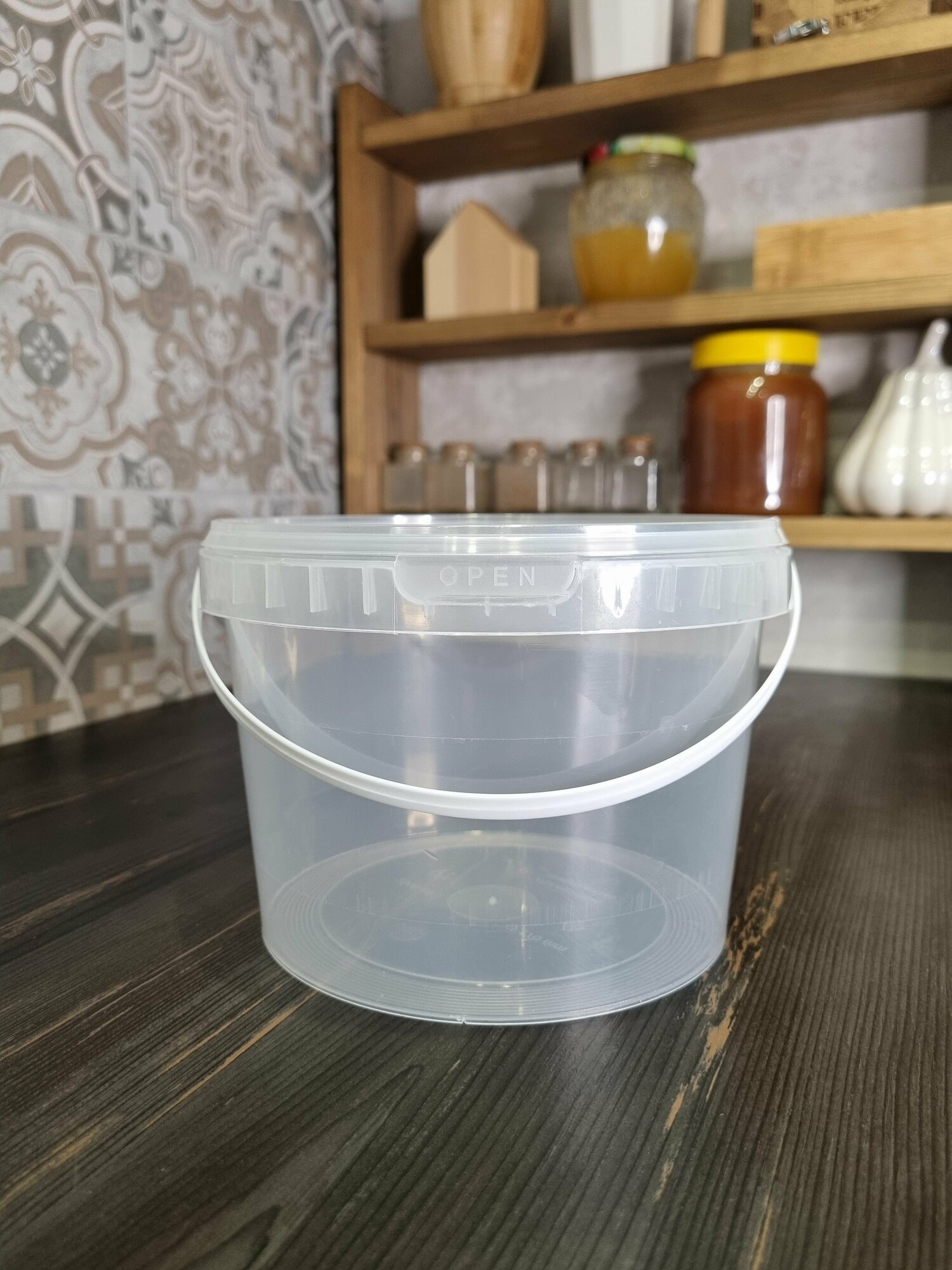 Пластиковое ведро с крышкой, 1 литр, 1 штука, прозрачное
