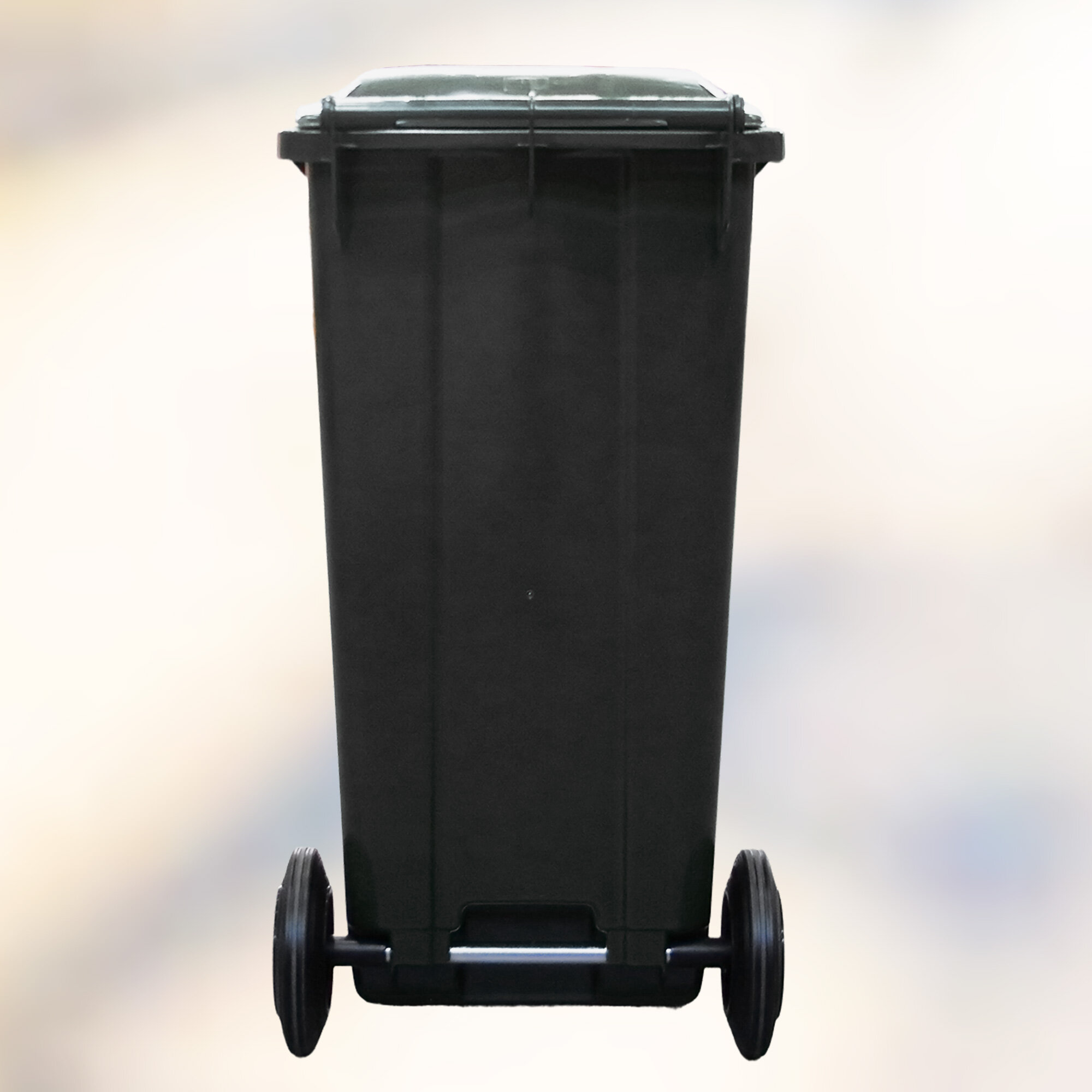 Мусорный бак 120л (литров), уличный контейнер для мусора, с крышкой, на колёсах, цвет серый / чёрный интересное:
