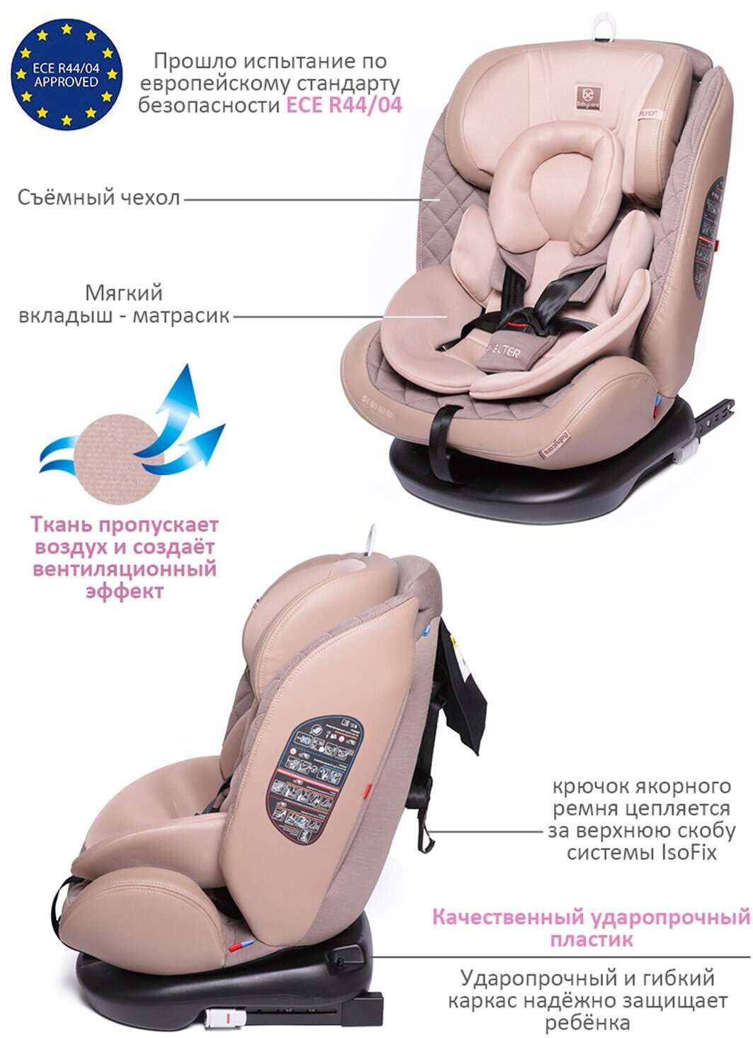 Детское удерживающее устройство Shelter гр 0+/I/II/III, 0-36кг, (0-12лет)BabyCare, Бежевый