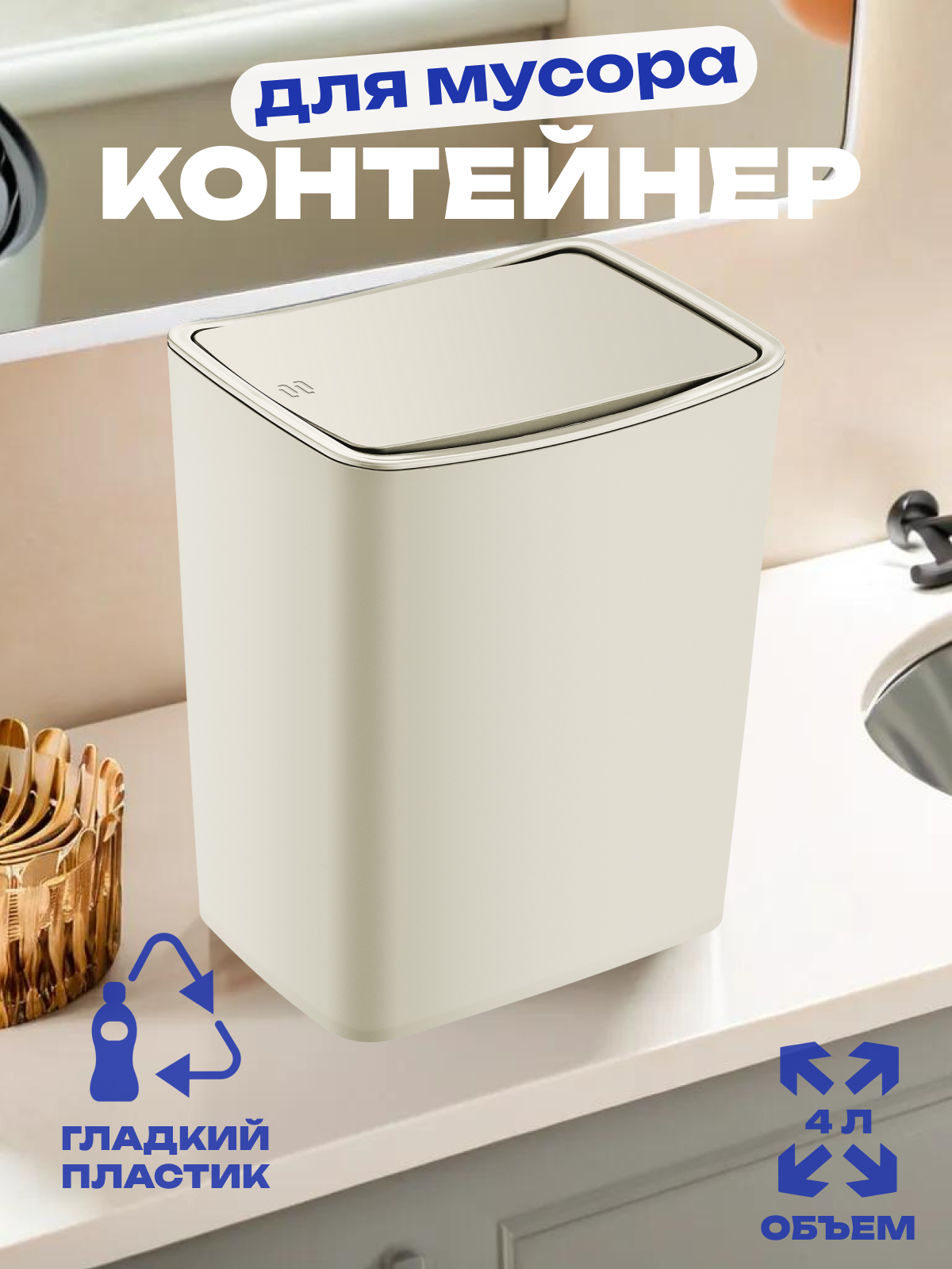 Контейнер для мусора TOUCH 4 литра, пластиковый, 17,5х12,5х21,3 см, цвет латте