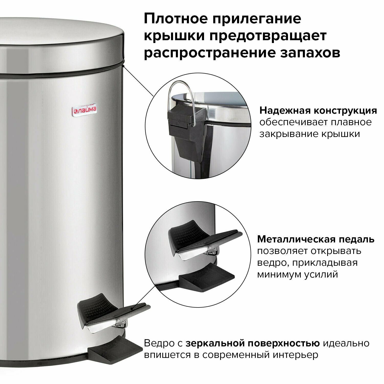 Мусорное ведро с крышкой и педалью 5 литров, мусорка в комнату, урна для мусора для кухни и туалета, сталь, зеркальное, Laima Classic, 880975 интересное: