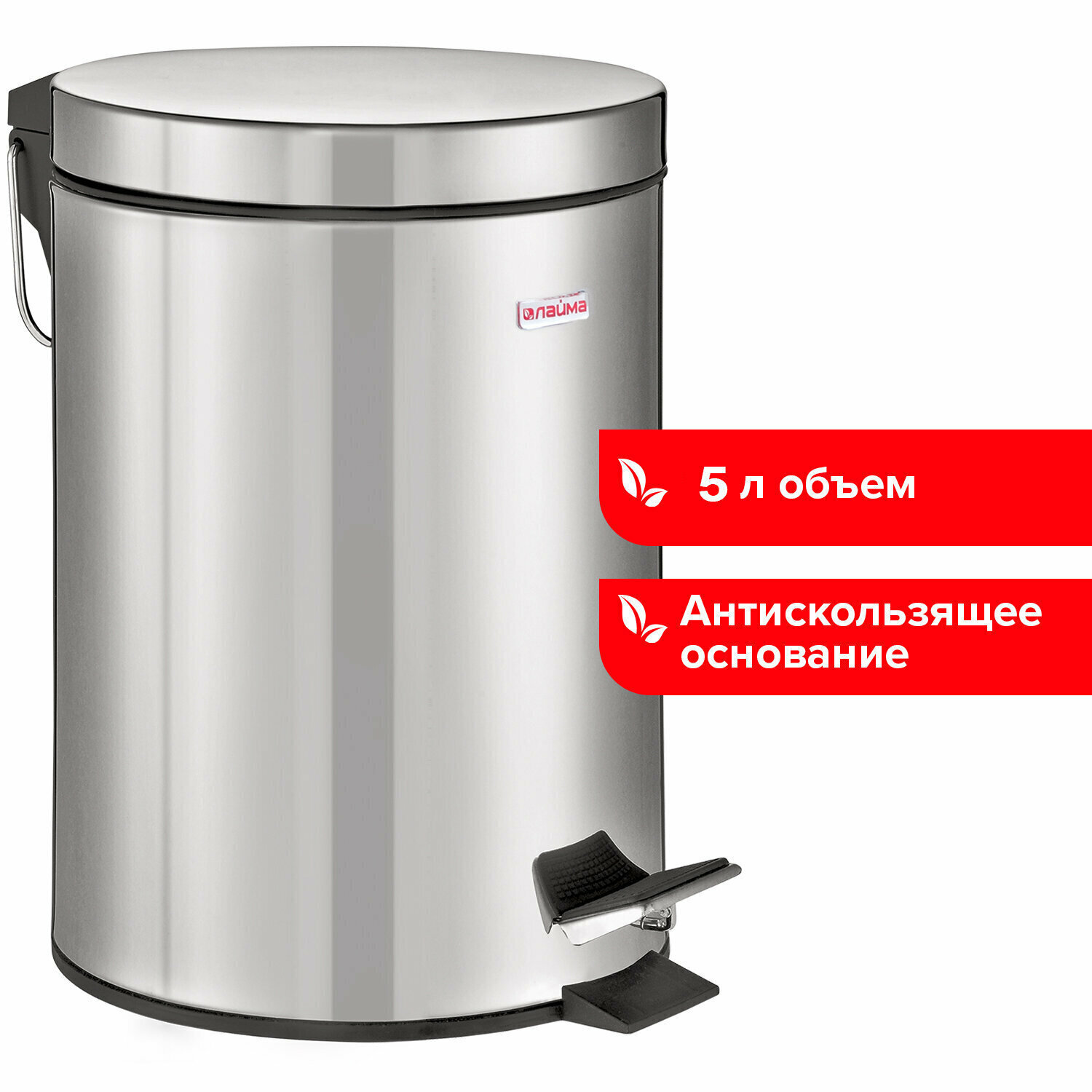 Купить Мусорное ведро с крышкой и педалью 5 литров, мусорка в комнату, урна для мусора для кухни и туалета, сталь, зеркальное, Laima Classic, 880975