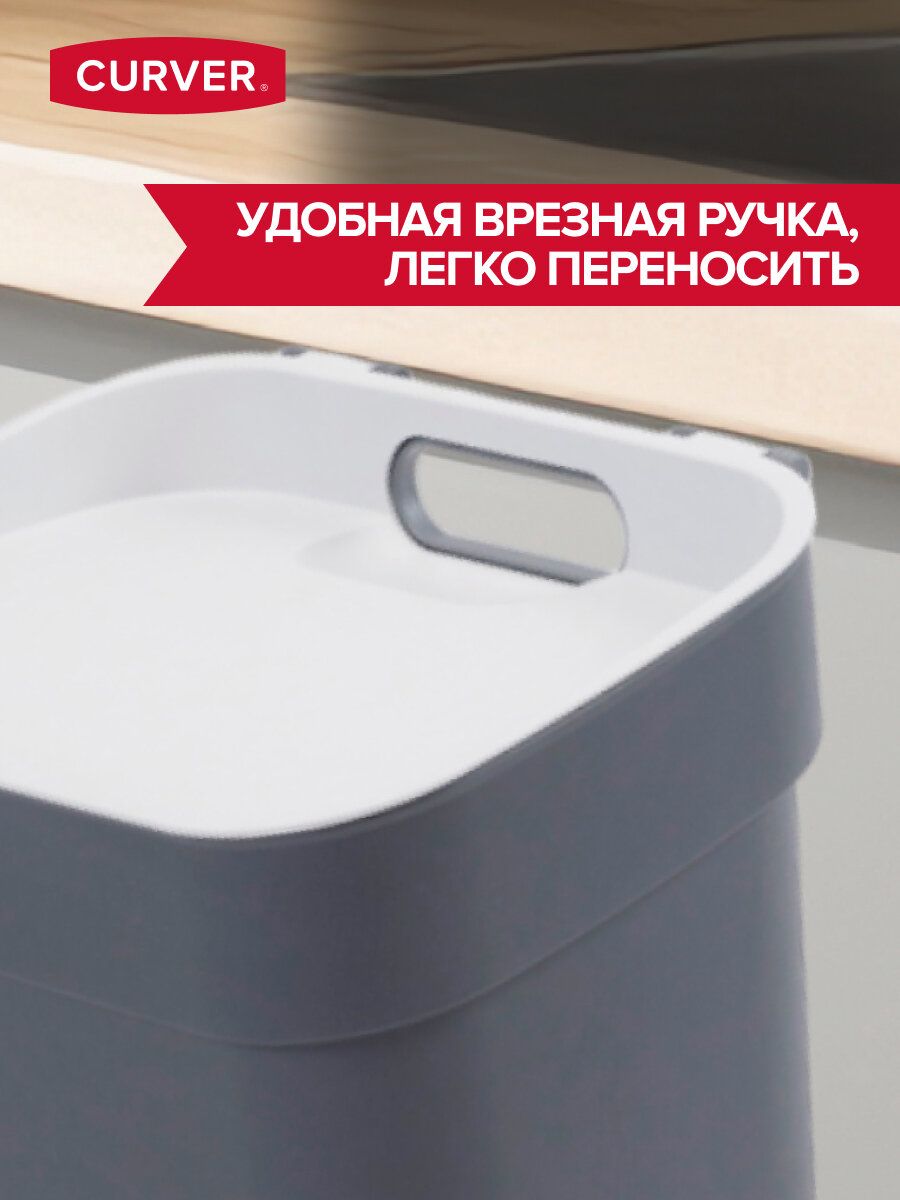 Мусорное ведро с крышкой для кухни и дома Curver Ready to collect 5 литров, 2100 антрацит/св. серый
