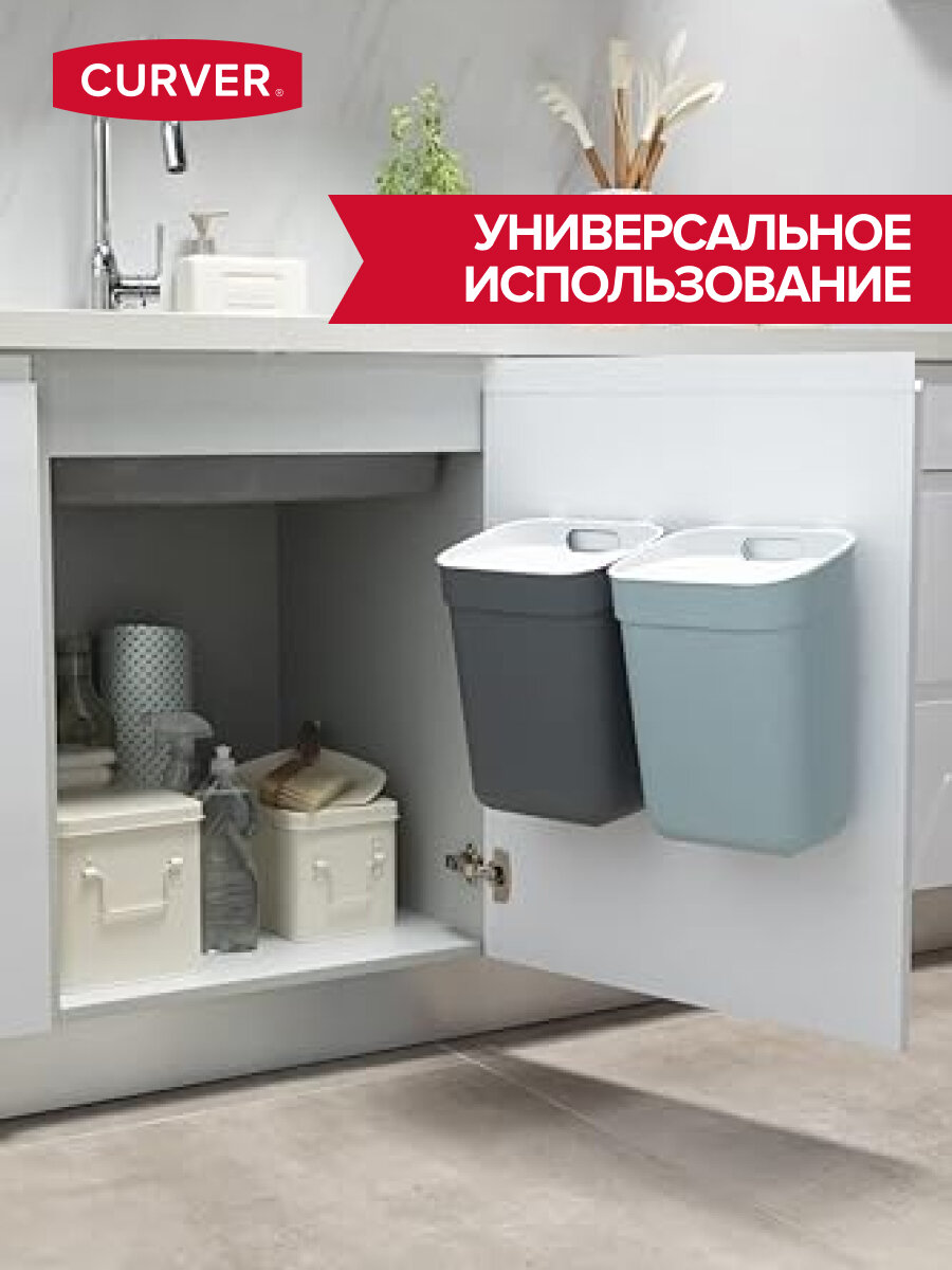 Мусорное ведро с крышкой для кухни, крепление на дверцу Curver Ready to collect 10 литров