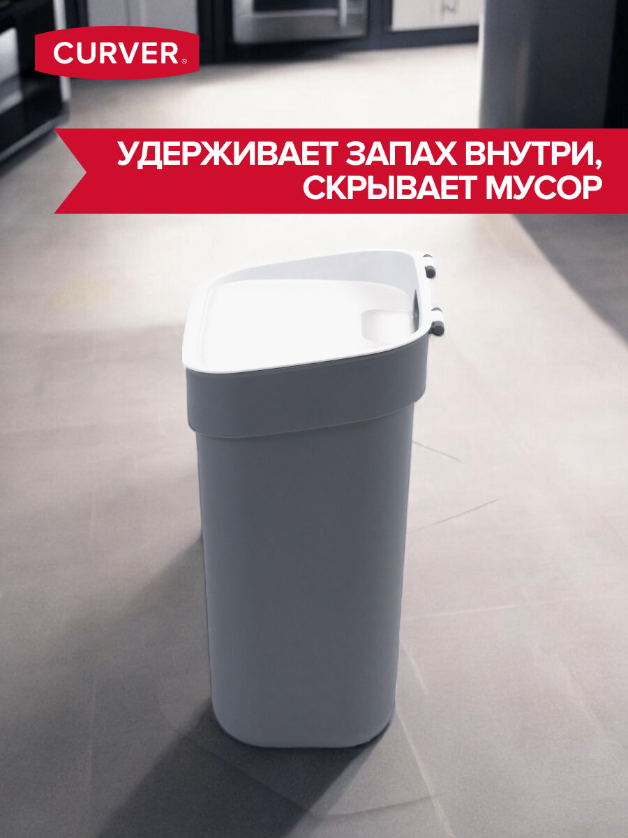 Мусорное ведро для кухни с откидной крышкой для кухни Curver Ready to collect 30 литров, 2103 белый/св. серый