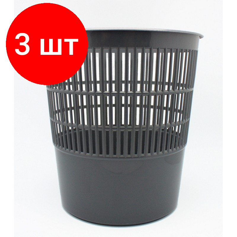 Купить Комплект 3 штук, Корзина офисная 10 л пластик, серая