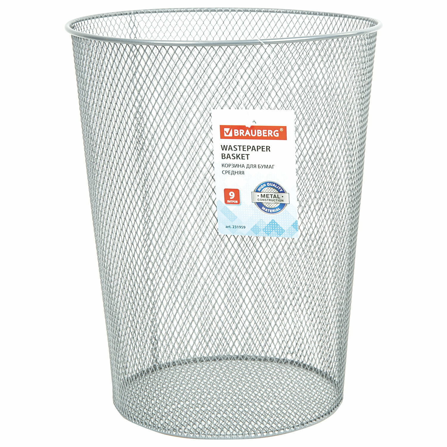 Корзина для бумаг 9л Brauberg Germanium, круглая сетчатая, металл, серебристая (231959), 24шт.