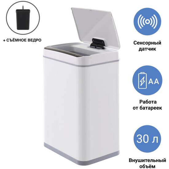 Сенсорное ведро для мусора Tesler STB-33 WHITE интересное: