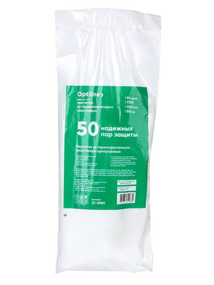 Перчатки ТПЭ термопластэластомер Optiline M 100 шт в упаковке интересное: