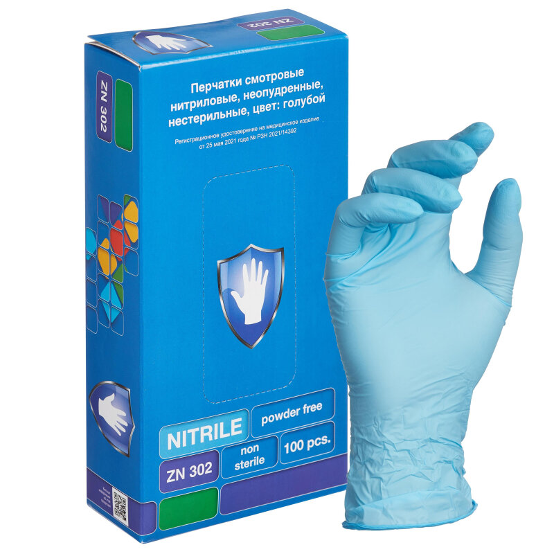 Перчатки нитриловые медицинские Safe&Care ZN302 голубые (50 пар, L)