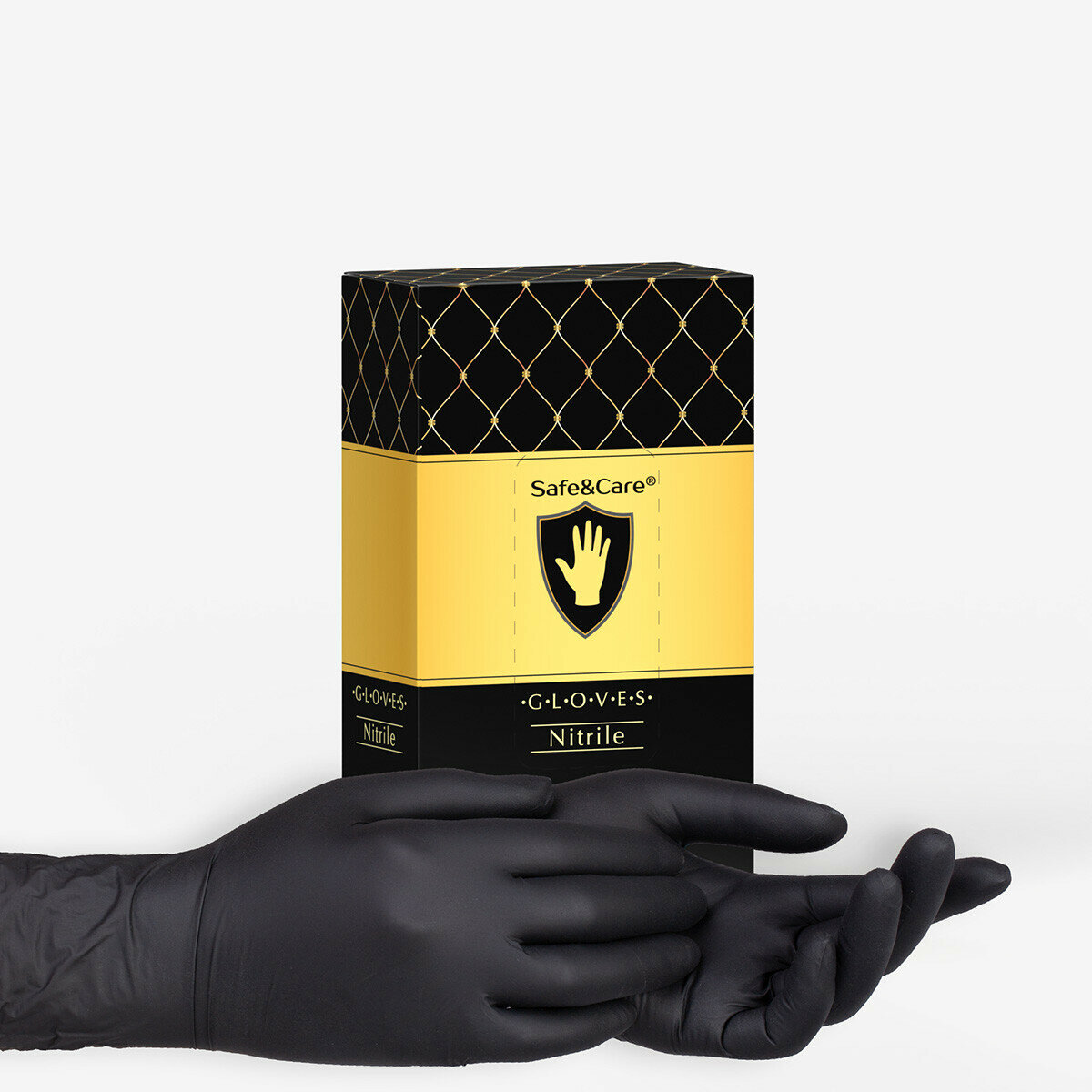 Перчатки Safe&Care нитриловые черные, размер XS, 50 пар.