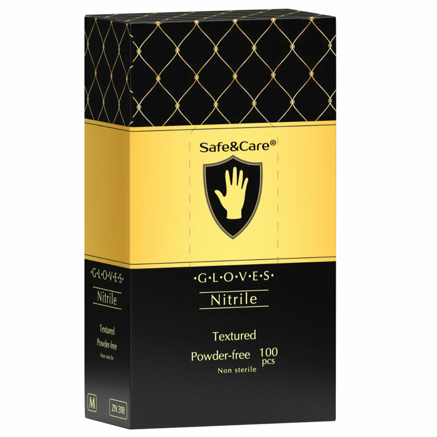 Перчатки нитриловые одноразовые 50 пар (100шт), размер M (средний), черные, SAFE&CARE ZN318, шк10980